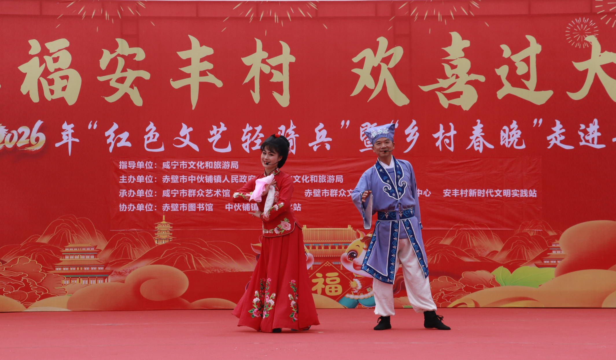 2月7日,由中伙铺镇、市文旅局主办,市图书馆、市群众文化事业发展服务中心承办的“幸福安丰村 欢喜过大年”乡村春晚在安丰村热闹开演,村民们欢聚一堂,观看文艺演出、非遗展、图书展,参与送春联下乡活动,围着篝火载歌载舞……用一个个充满烟火气的热闹场景,奏响乡村迎春节的和美乐章,热热闹闹迎接新年的到来。