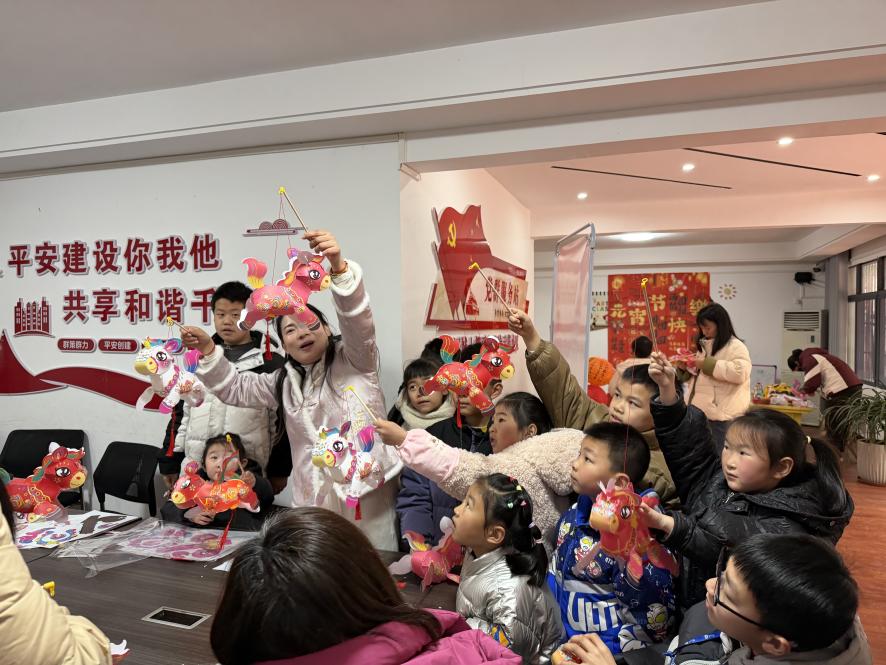 亲子花灯DIY环节。该行精心准备了花灯材料包,家长与孩子们围桌而坐、携手创作,剪彩纸、粘灯架、挂流苏,配合默契、其乐融融。在大手牵小手的精心制作下,一盏盏造型各异、色彩斑斓的花灯逐渐成型。孩子们高举亲手制作的花灯,脸上绽放出灿烂的笑容,既锻炼了动手实践能力,更拉近了亲子距离。