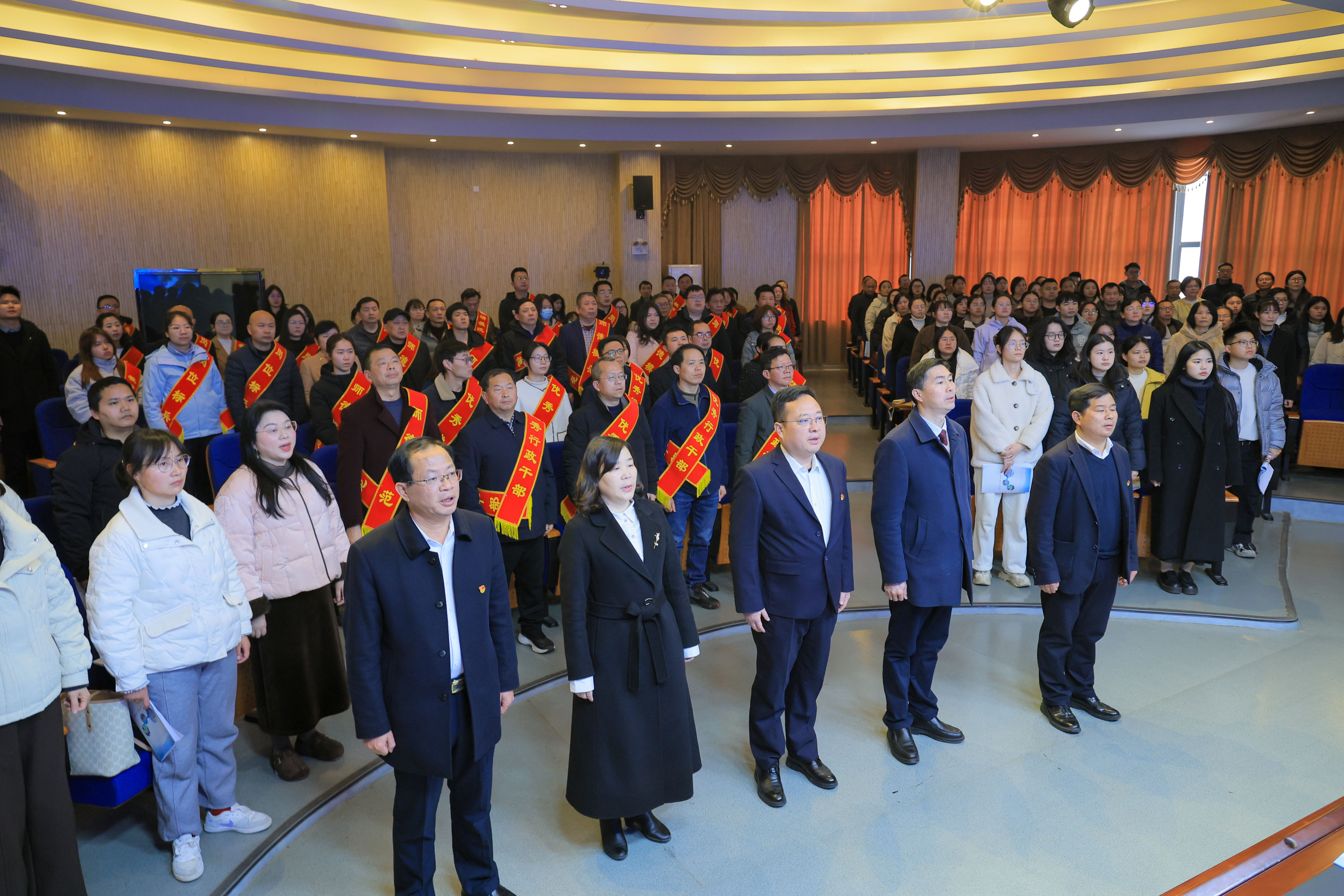 大会在国歌声中拉开帷幕。全体教师进行师德师风集体宣誓,签订《廉洁从教承诺书》,以仪式化、制度化举措强化师德师风建设,营造清正教风。会上,学校对优秀学科组、优秀行政干部、优秀党员、师德模范、岗位标兵、教研教改先进个人进行集中表彰。
