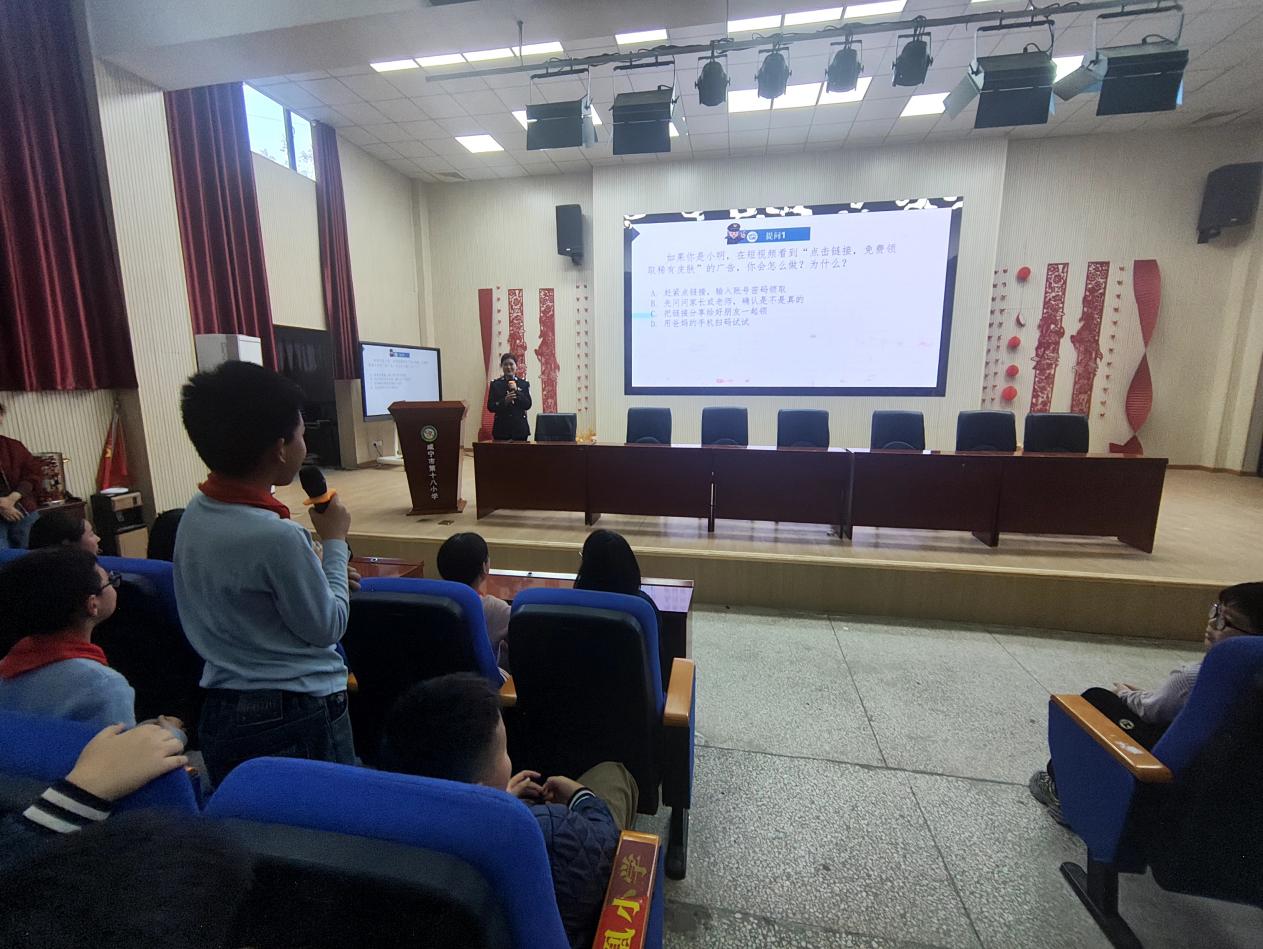 此外,社区还邀请了民警为师生们开展反诈宣传。民警结合实际案例,深入浅出地讲解了常见的诈骗手段和防范方法,提醒大家提高警惕,避免上当受骗。