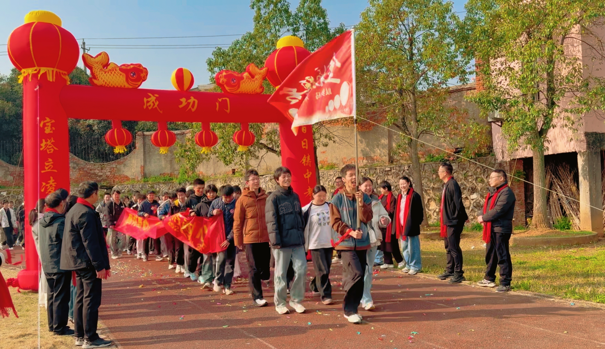 誓言在耳,步履不停。宣誓结束后,各班学子依次走到班级横幅前,郑重地签下自己的名字,一笔一划,皆是对梦想的坚守;学子们拿起腕带,认真写下心中的心愿与目标,一字一句,都是对未来的期许。随后,各班高举鲜艳的班旗,喊着各具特色的励志口号,迈着坚定的步伐依次列队穿过象征着成功与希望的“成功门”。门两侧的老师们微笑着与学子们逐一击掌,掌心相触的瞬间,是鼓励,是信任,更是师生间最温暖的联结。穿过“成功门”,学子们将写满心愿的腕带系在校园主干道两侧的树上,嫩绿的枝叶间,五彩的腕带随风摇曳,寓意着将青春的誓言留在母校,让梦想在母校沃土生根发芽,以拼搏浇灌希望,以奋斗收获荣光。