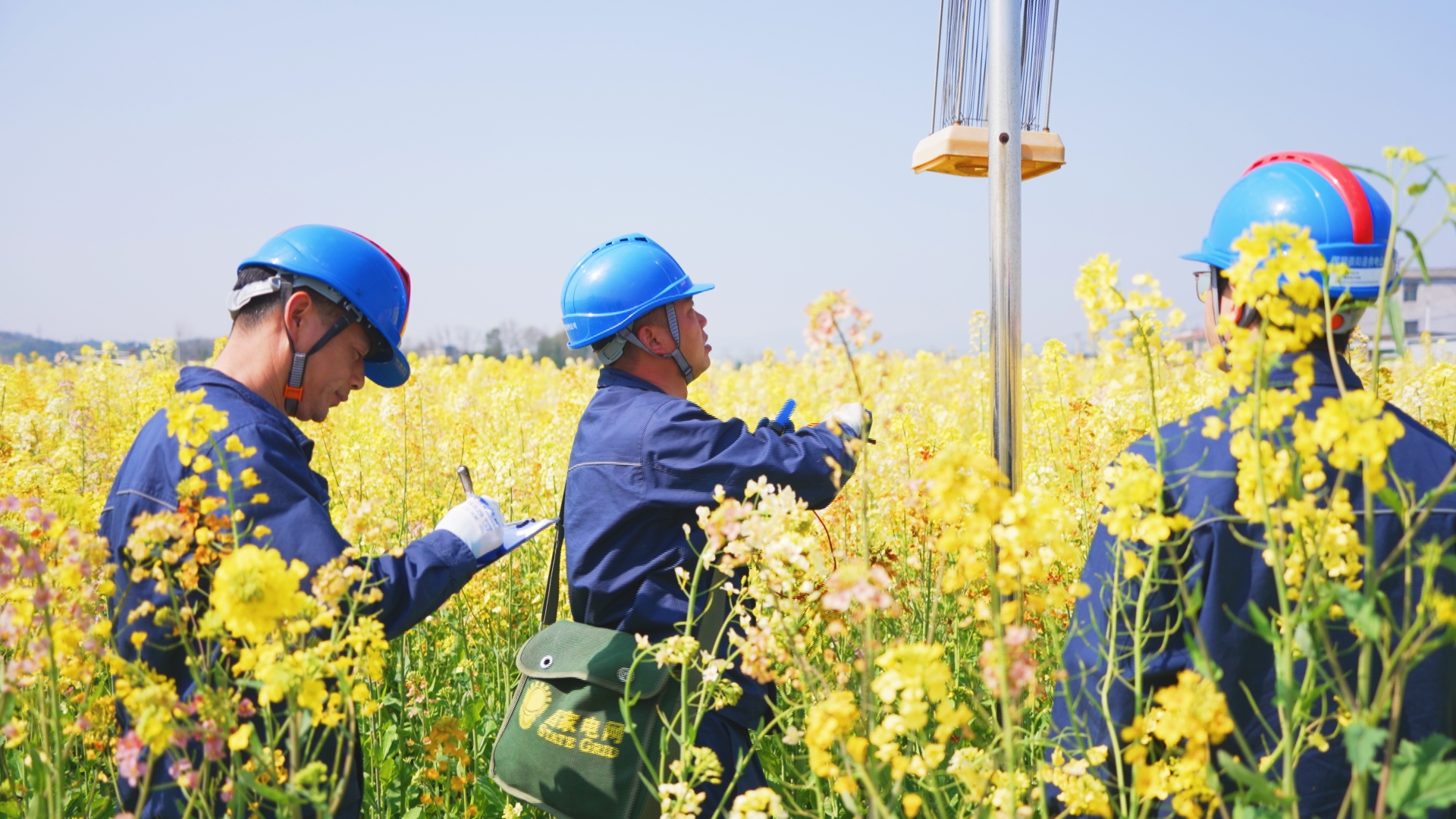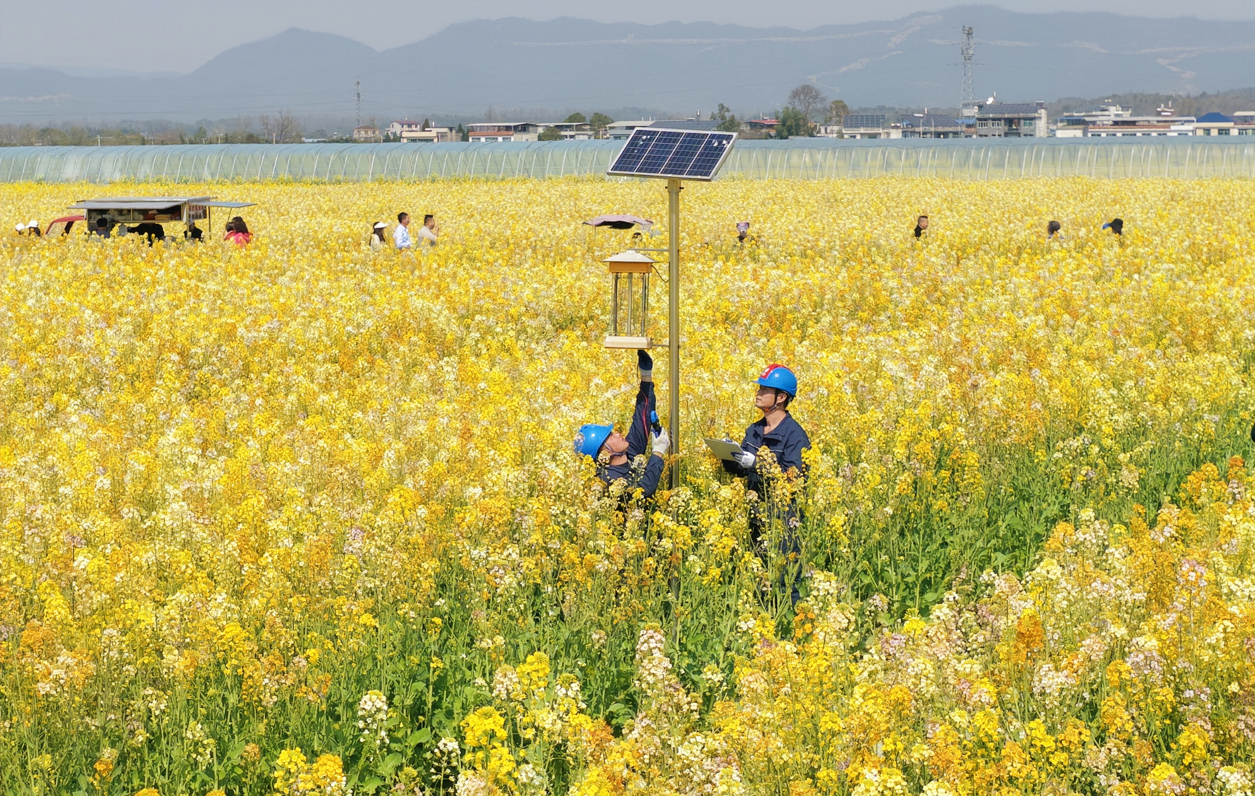 眼下,崇阳县青山镇铺前村七彩油菜花进入盛花期,为保障春耕灌溉、花田管护及周边旅游服务用电无忧,3月14日,国网崇阳县供电公司组织党员服务队深入田间地头,开展专项电力巡检、隐患排查与服务保障,为春耕生产保驾护航。