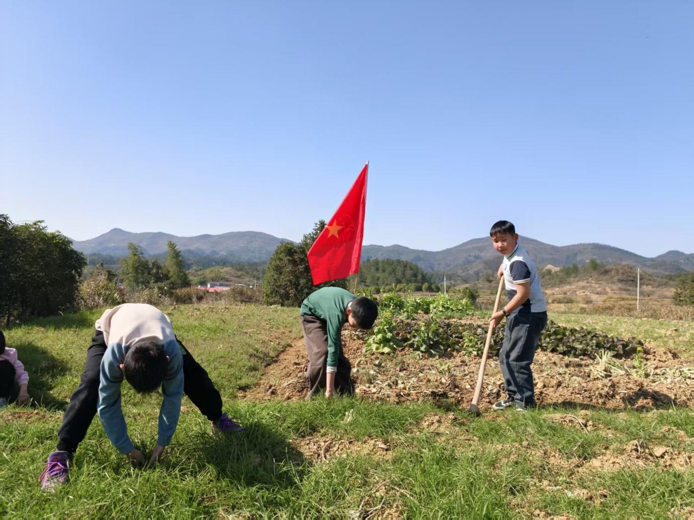 如果说净家园行动是守护公共空间的“大课堂”,那么农事小助力则是走进田间地头的“实践课”。3月13日,在学校的组织下,孩子们带着农具来到郭家岭村农户菜园,重点帮扶家中无劳动能力的农户。拔草、浇菜、整理院落,小小的身影在菜畦间穿梭,稚嫩的双手认真劳作。孩子们一边帮忙,一边听长辈讲述农耕故事,在亲近土地的同时,更体会到劳动的艰辛与奉献的快乐。