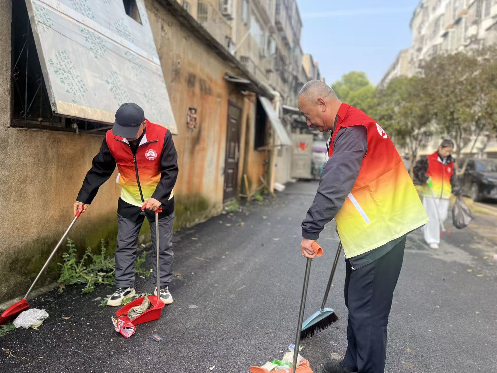 活动现场,桂乡管家们分组分片推进整治工作。针对辖区背街小巷、居民楼道、绿化带等区域的卫生死角,大家手持扫帚、夹子、垃圾袋等工具,全面清除积存垃圾、枯枝落叶及乱堆乱放杂物,让社区环境焕然一新。同时,管家们化身垃圾分类宣传员,通过入户宣讲、发放宣传册等方式,向居民详细讲解四类垃圾的分类标准、投放要求及资源化利用意义,针对老年居民等群体进行“一对一”指导,帮助大家熟练掌握分类技巧。