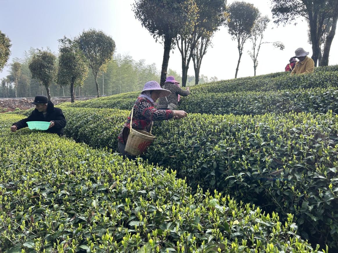 “采摘时要选芽头壮实、饱满的一芽一叶初展,要用手腕的巧劲,不能用指甲蛮掐,这样才能保证茶叶的品相和滋味。”茶园一角,川玉茶业总经理张中熠正指导采茶工规范操作。他介绍,今年春茶采摘节奏因天气略有调整,3月15日完成头采,当时只采摘了少量鲜叶,中间趁着晴天又采摘了一日,“晴天采摘的鲜叶水分适中,内含物质积累更充分,制成的茶叶品质更有保证。”