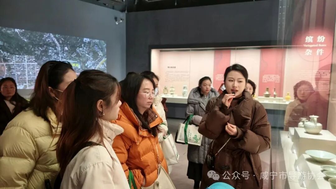 11时左右,全体参会人员在咸宁市博物馆开展实地实训,作为导游“三进”交流活动的首站,大家通过沉浸式观摩与现场交流,重点提升文物历史类景点的讲解能力,场馆专业讲解员结合实物展品进行现场教学,答疑解惑,推动理论与实践深度融合。