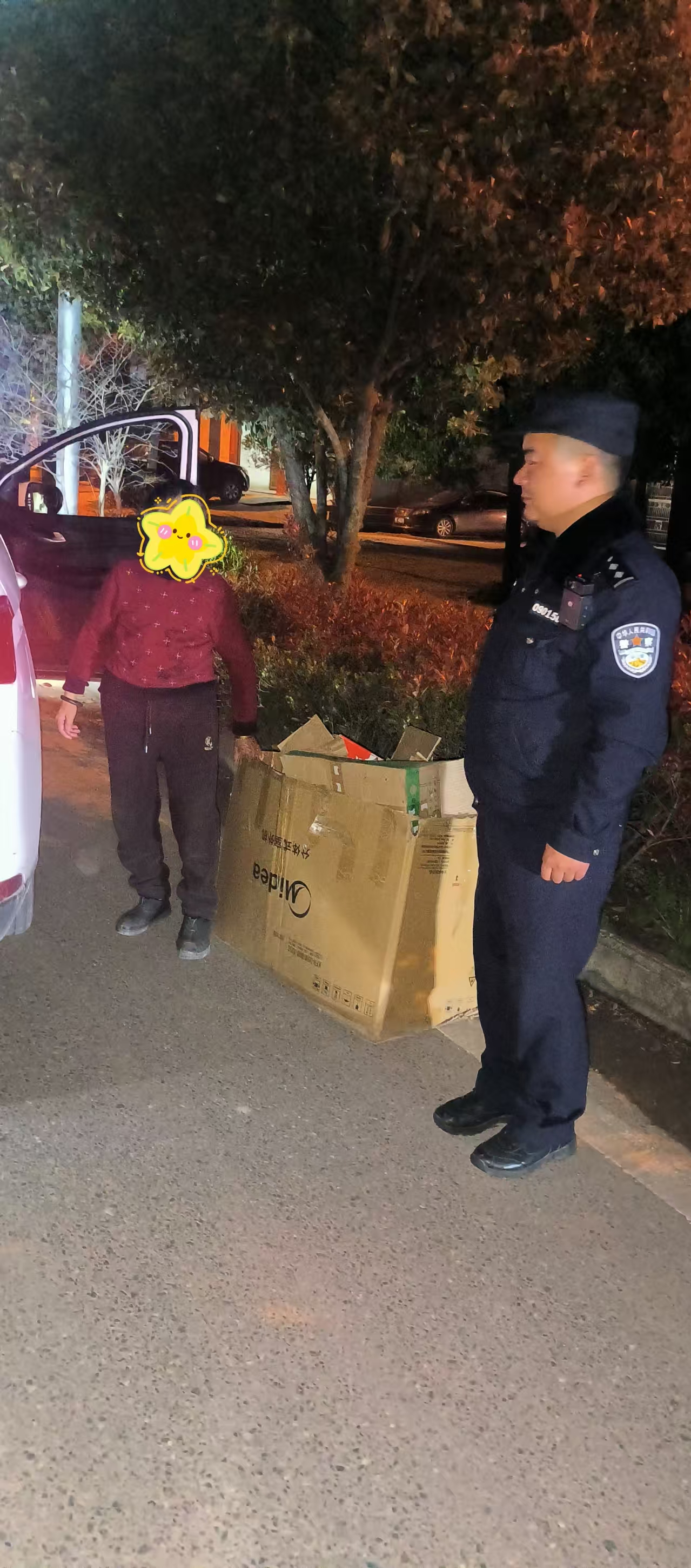 此时老人仍在路边捡拾废品,对周围的环境浑然不觉,完全忘了回家的路。办案民警立即下车查看,随后第一时间联系付先生,告知其老人的安全情况。