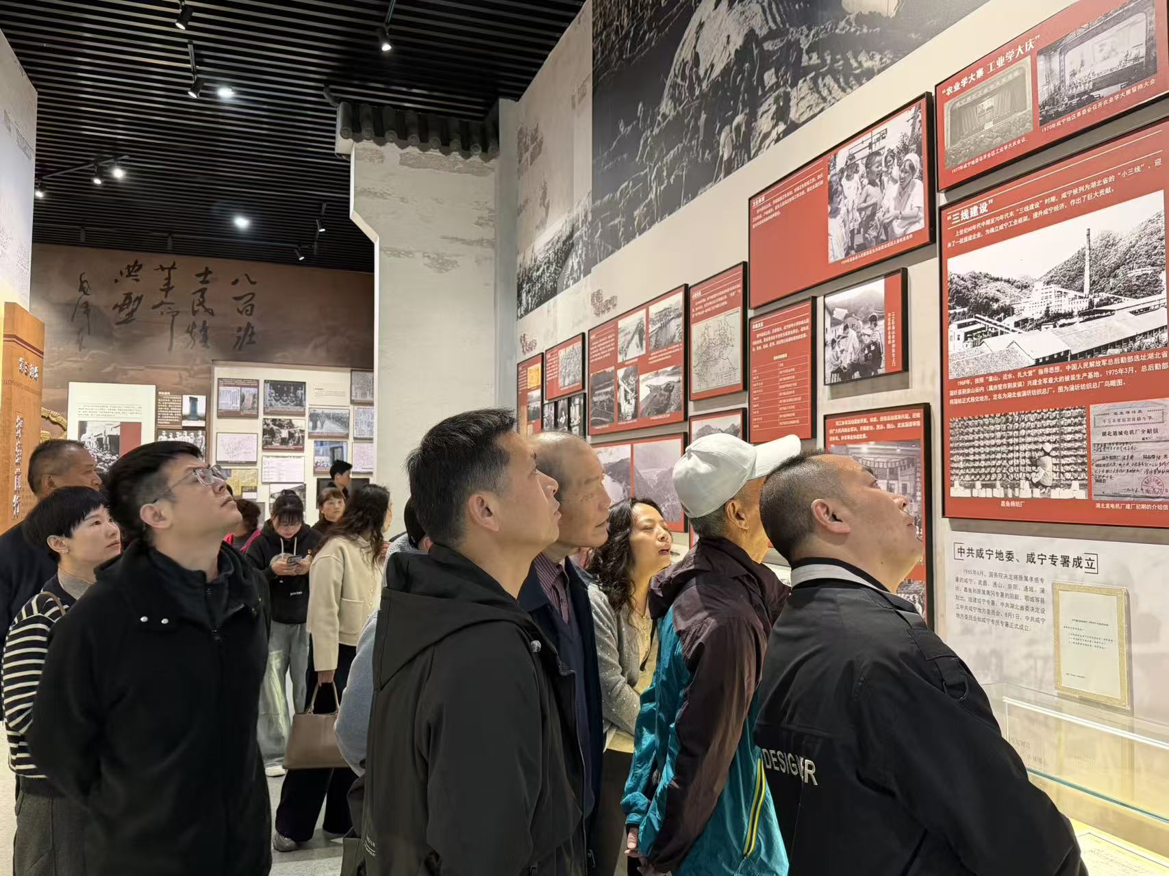 活动伊始,老党员们怀着崇敬的心情来到咸宁市档案馆,开启了一场沉浸式的红色记忆之旅。在档案馆工作人员的专业讲解下,老党员们依次参观了各类红色档案展区,认真聆听每一份档案背后的革命故事。展区内的文字史料、珍贵图片、实物档案,系统还原了咸宁作为武汉会战与长沙会战前沿屏障、鄂南沦陷后抗日军民浴血奋战战略支点的峥嵘岁月,生动展现了咸宁人民不屈不挠的斗争精神和中国共产党领导下的全民抗战生动实践。每一段历史都让老党员们深受触动,大家不时驻足凝视、低声交流,在泛黄的档案中追忆革命先辈的奋斗历程,感悟红色信仰的力量。