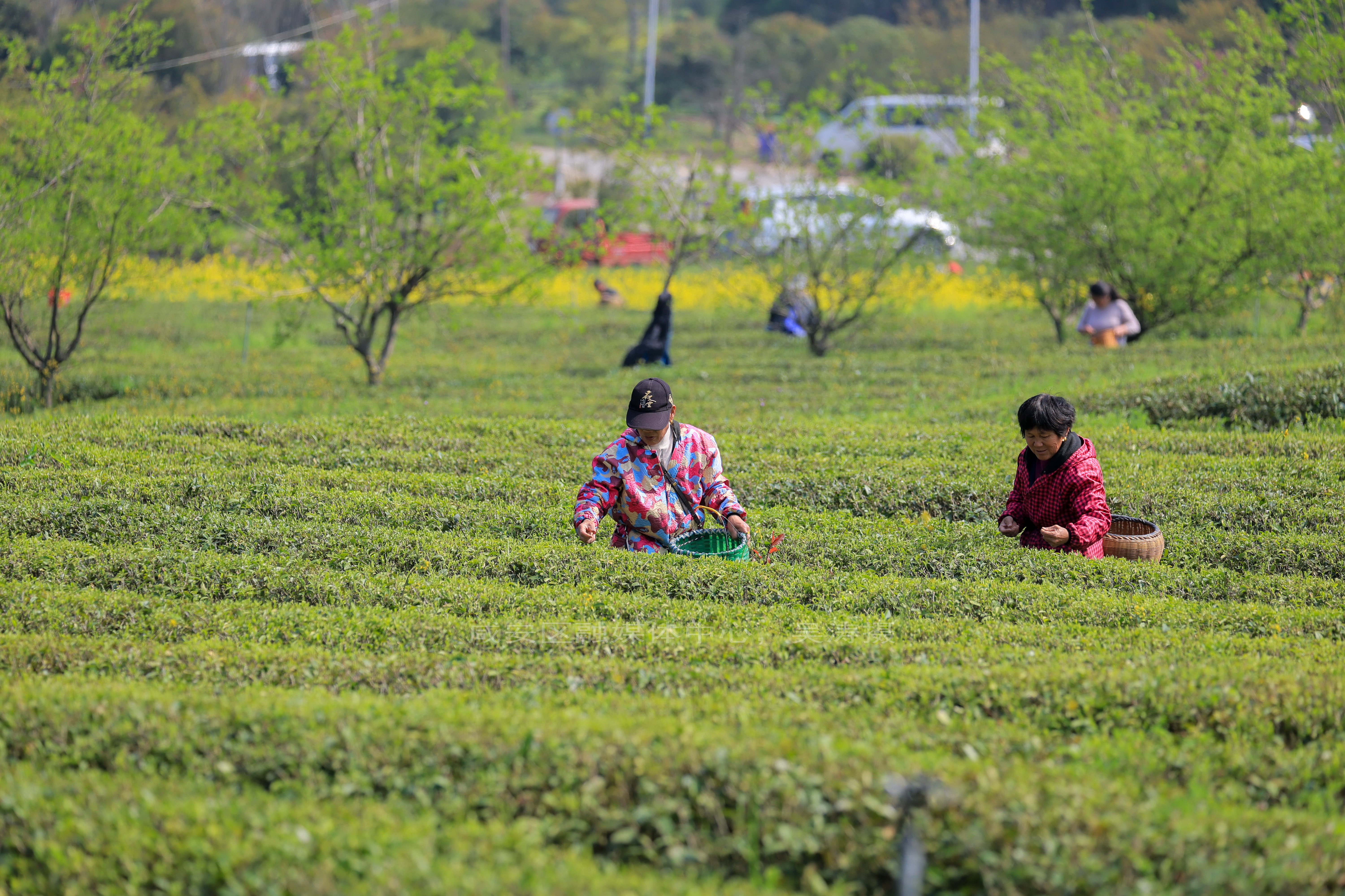4月1日,咸安区大幕乡西山下茶叶基地迎来春茶采摘季。漫山茶园绿意盎然,茶农们穿梭在茶垄间,指尖翻飞采撷鲜嫩茶芽,金黄油菜花与翠绿茶海相映成趣,勾勒出一幅春日丰收的乡村画卷。