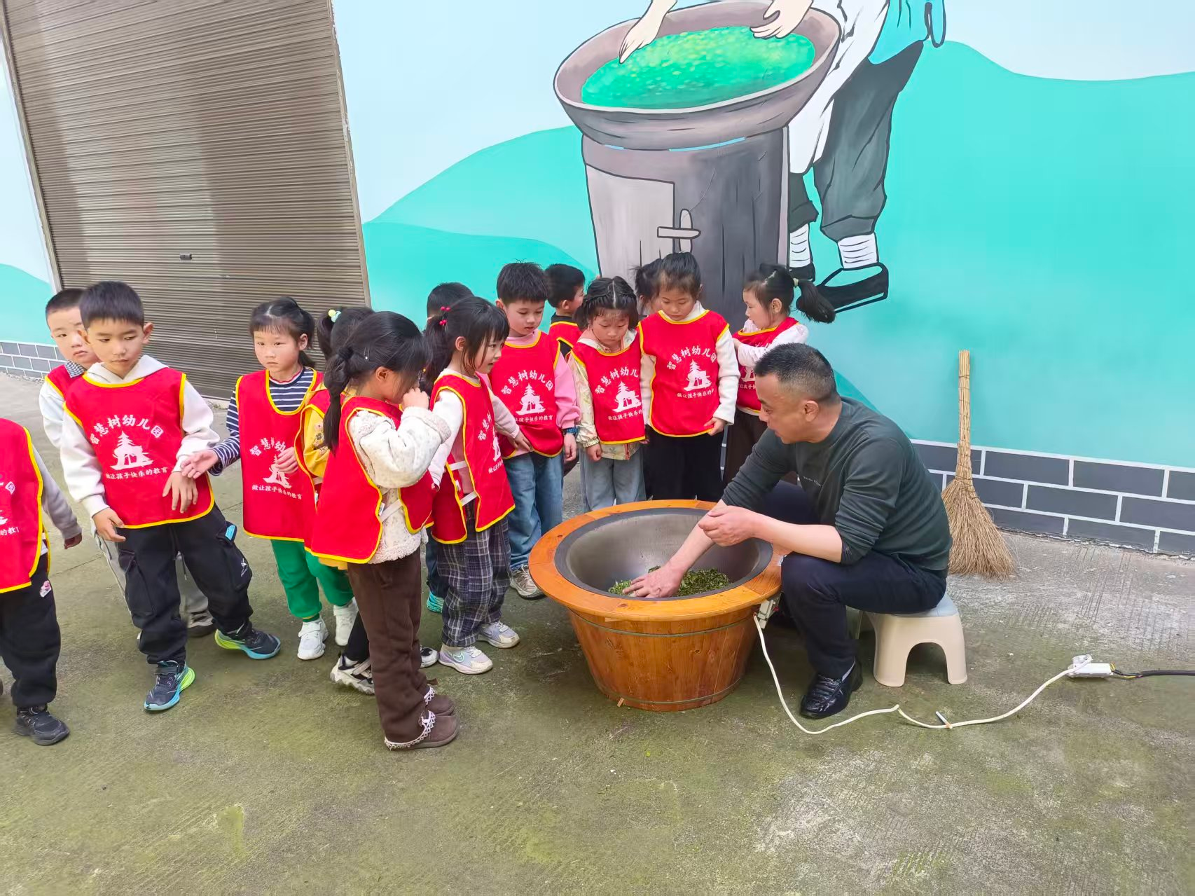 回到制茶车间,在师傅的指导下,孩子们轮流体验了揉捻茶叶的工序,感受掌心温度与茶叶变化的神奇互动。童言稚语间,劳动的严谨与乐趣悄然扎根。活动尾声,孩子们品尝了自己参与制作的春茶,清甜的茶汤与孩子们自豪的笑容相映成趣。