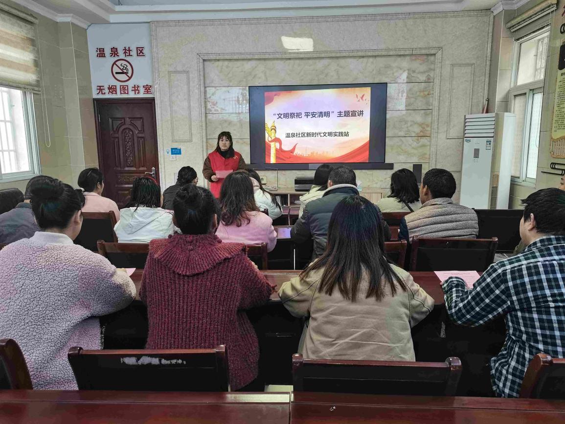 温泉社区以“平安清明、文明祭扫”为重点,开展全方位文明祭祀宣传活动,通过主题宣讲普及森林防火与安全祭祀知识,在山林入口设立志愿值守点排查火险,同时入户走访倡导简办丧事、摒弃大操大办陋习,多举措筑牢节日安全防线,推动文明治丧理念深入人心。
