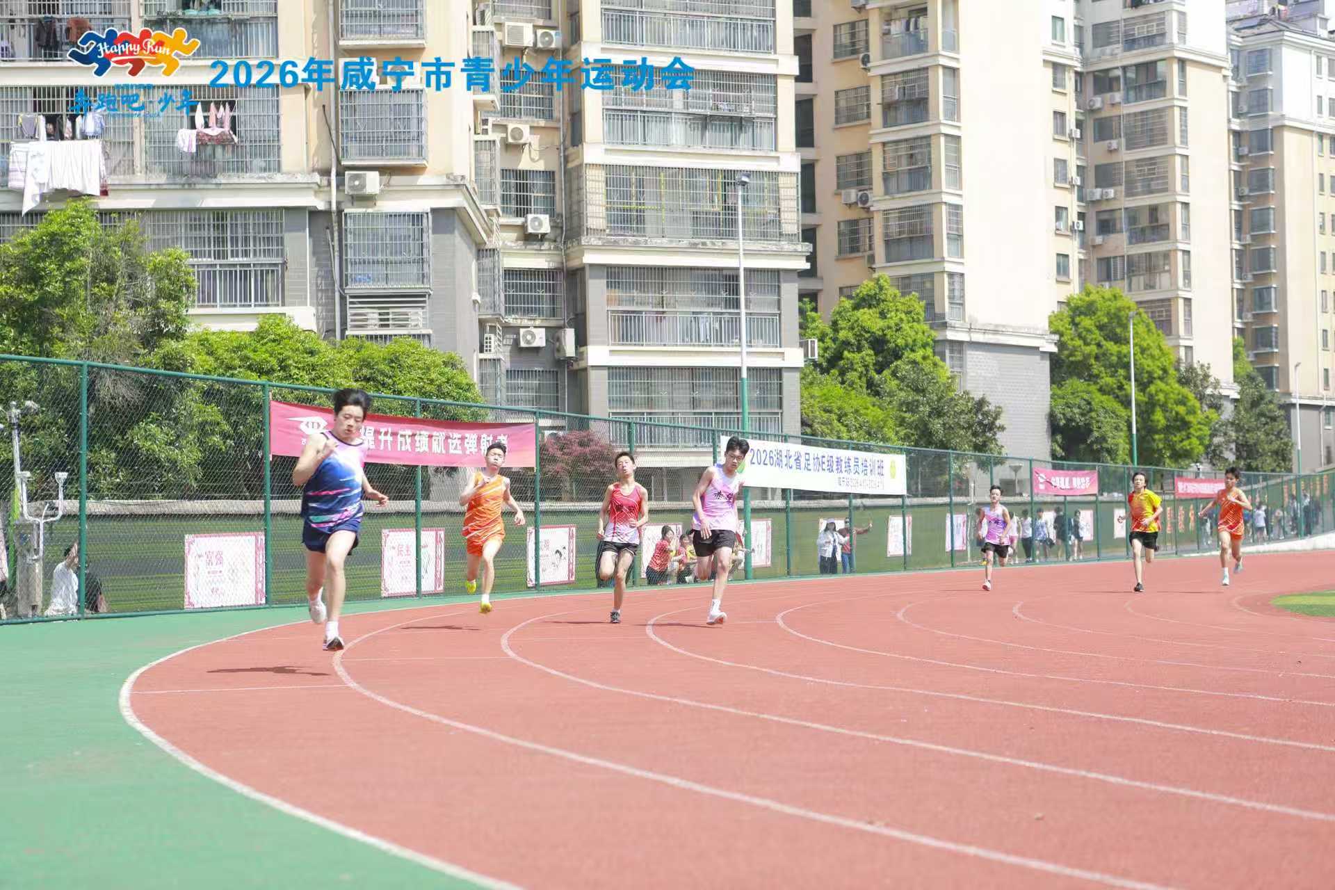 开幕式结束后,羽毛球、篮球、足球及田径等项目比赛相继开始。4月18日至19日,篮球、羽毛球、足球比赛在咸宁全民健身中心进行,田径比赛则在咸宁职业技术学院田径场举行。田径赛场上,发令枪响后,运动员迅速起跑,动作协调而充满力量;看台上,队友挥舞旗帜,呐喊助威声此起彼伏。咸宁东方外国语学校田径队主教练刘坚在场边关注比赛并表示:“本次田径比赛既是对学生日常训练成果的检验,也为他们提供了突破自我、锤炼意志的平台。希望所有运动员都能取得满意成绩。”
