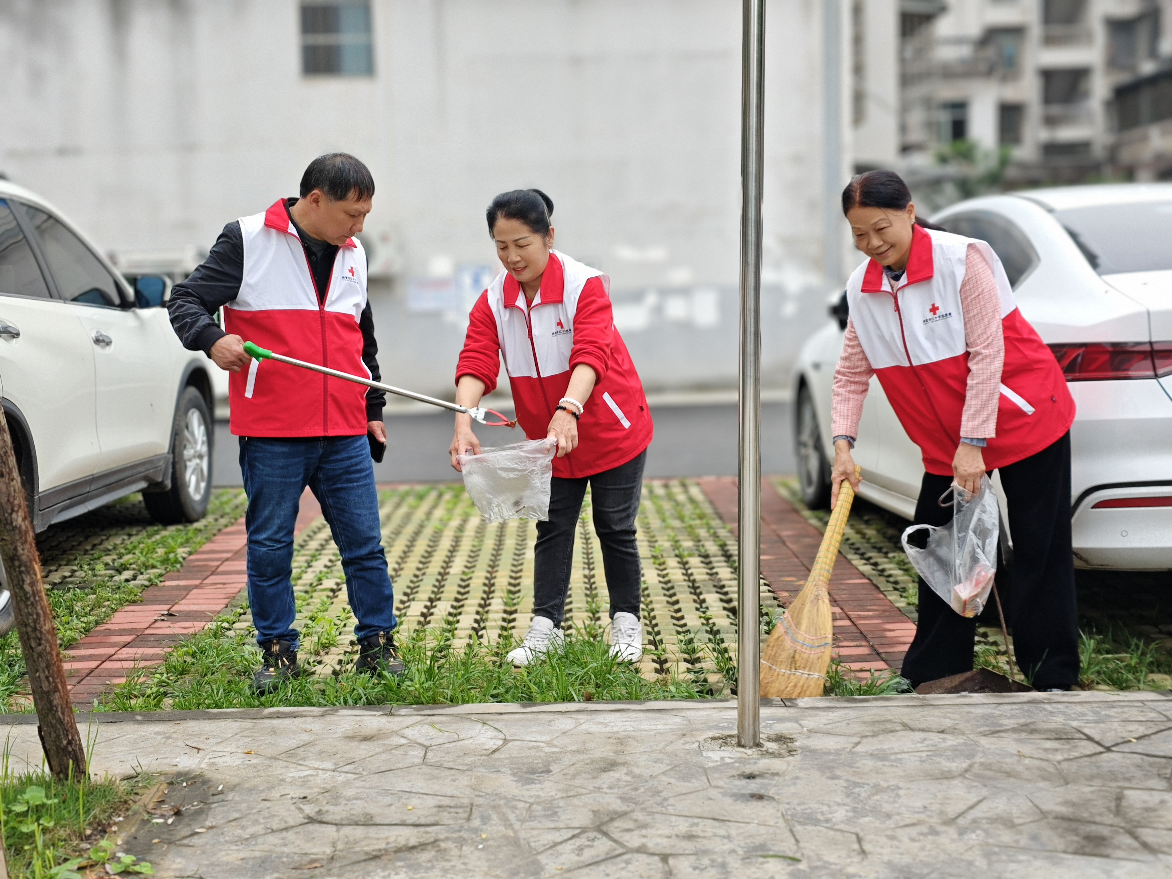 活动中,志愿者身着红马甲,携带扫帚、垃圾夹、垃圾袋等工具,对小区开展全方位清洁整治。大家分工协作、有序配合,沿小区外围道路巡回捡拾垃圾,劝导规范停放车辆、维护通行秩序,深入楼道、人行道、花坛、小区广场等区域,重点清理烟头纸屑、塑料垃圾及卫生死角,不放过一处盲区、不遗留一处杂物。