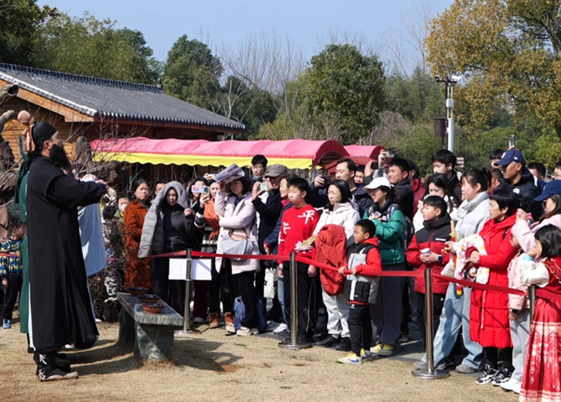 在景区另一侧,“东风街”升级为全国首个沉浸式三国好运主题特色消费区。青石板路上,身着古装的商贩沿街叫卖,NPC演员沿街起舞,《赤壁・借东风》实景演艺正在上演。游客可以化身谋士、侠客或将士,完成阵营任务、参与情景互动,在吃喝玩乐中感受三国时期的市井生活。“我今天玩了整整一天,感觉自己真的当了一回三国英雄。”林晓说。据了解,景区已开发出15个系列53款文创产品,让三国文化变成了游客能带走的“纪念”。