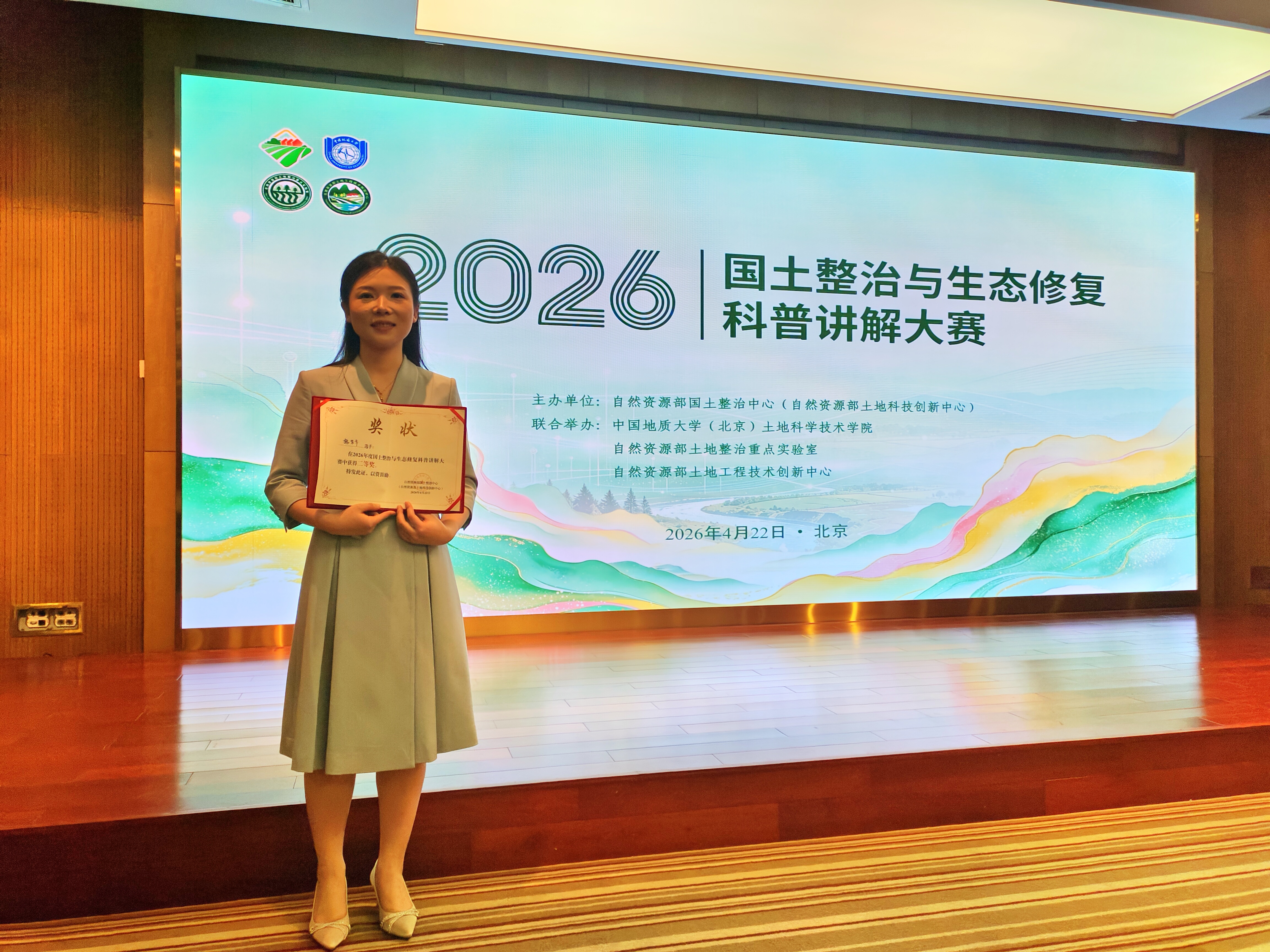 4月22日下午,自然资源部国土整治中心举办2026年度国土整治与生态修复科普讲解大赛,咸安区自然资源和规划局选手魏紫幸代表湖北省国土整治中心参赛,凭借讲解作品《让山下的田更肥,让山上的林更美》脱颖而出,荣获二等奖。