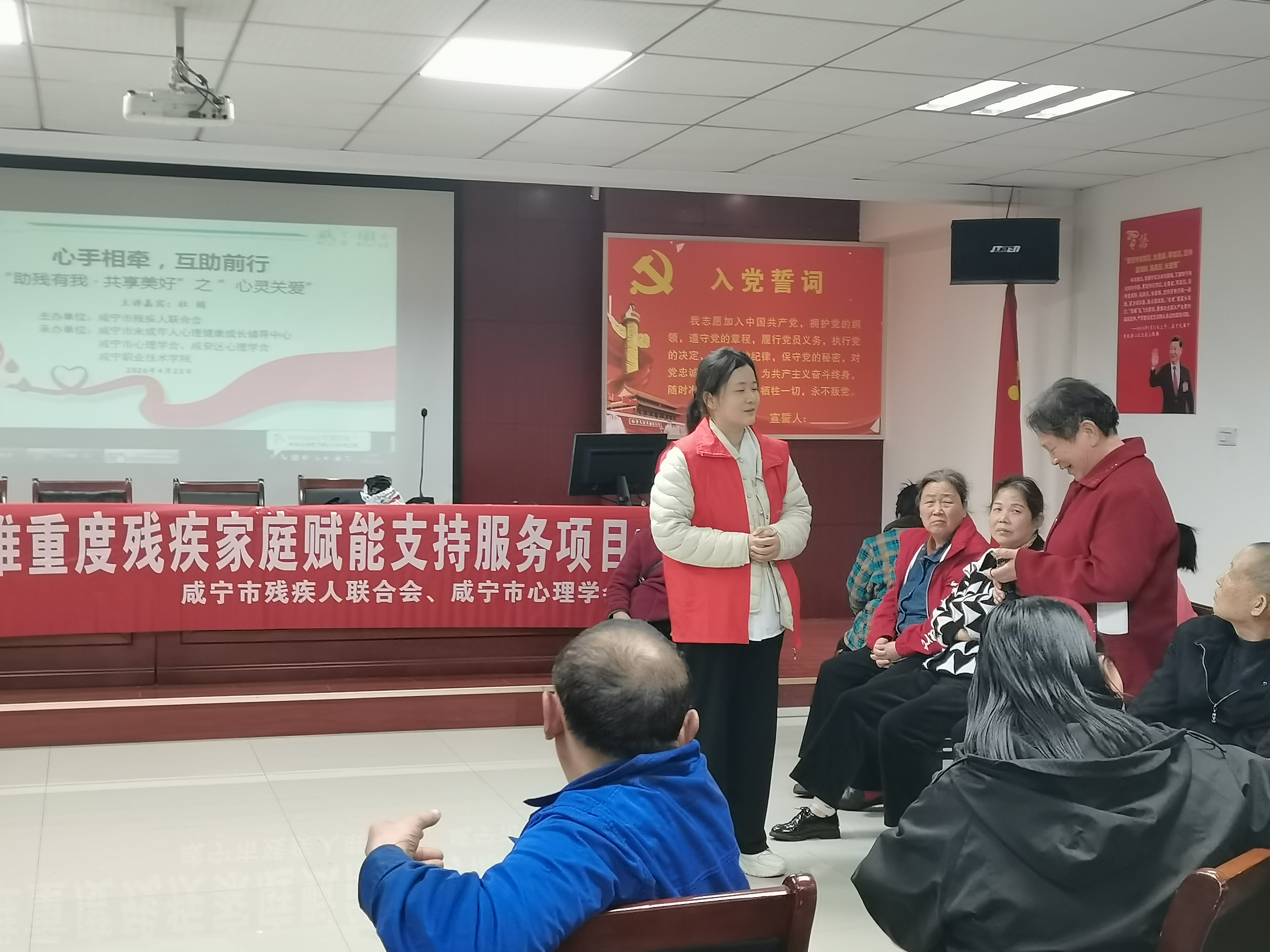 4月23日,由咸宁市残疾人联合会主办,市、区心理协会联合温泉街道温泉社区承办的“助残有我・共享美好”心灵关爱健康讲座顺利举行,旨在缓解照护压力、填补心理健康服务空白,搭建互助交流的温暖平台。
