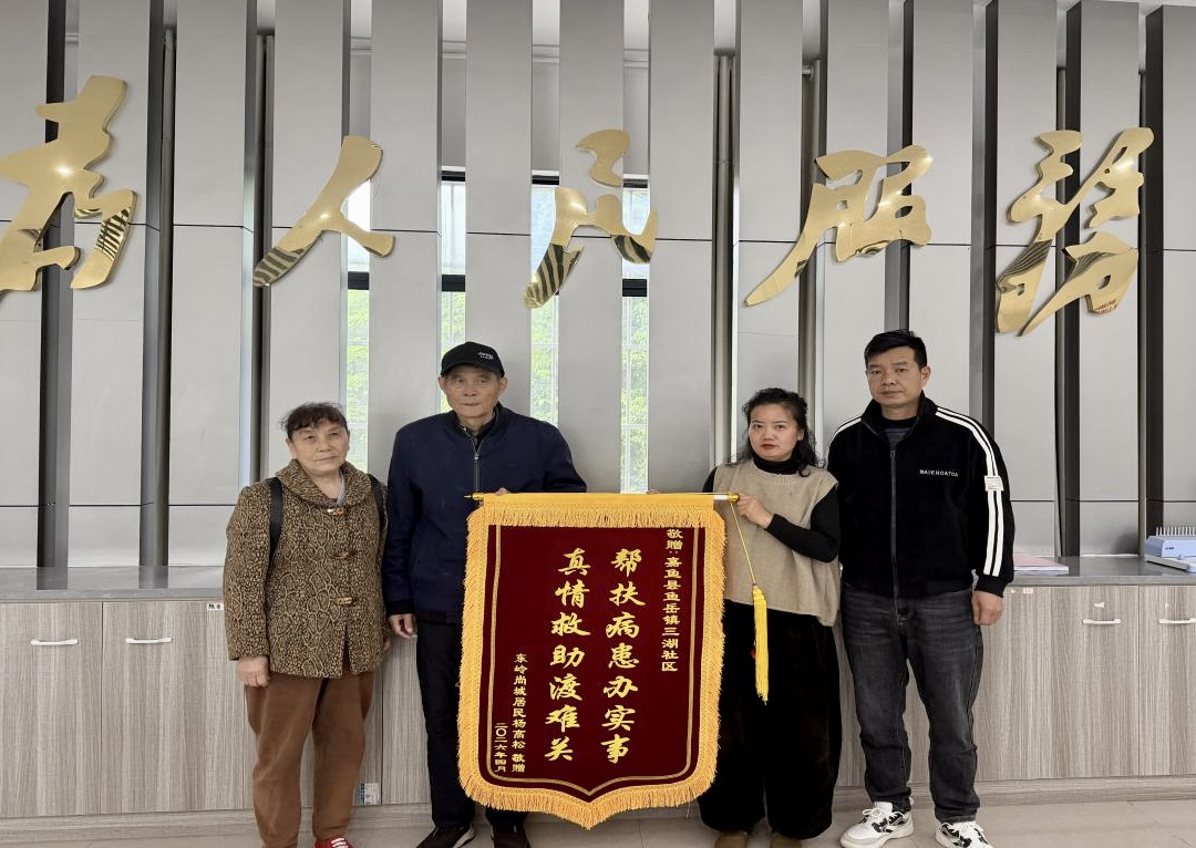 近日,三湖社区居民杨先生与陈阿姨将一面印有“真情救助渡难关 帮扶病患办实事”的锦旗,专程送到社区民政专干李萍手中,感谢她主动作为、贴心帮扶,为家庭及时办理临时救助,解了燃眉之急。