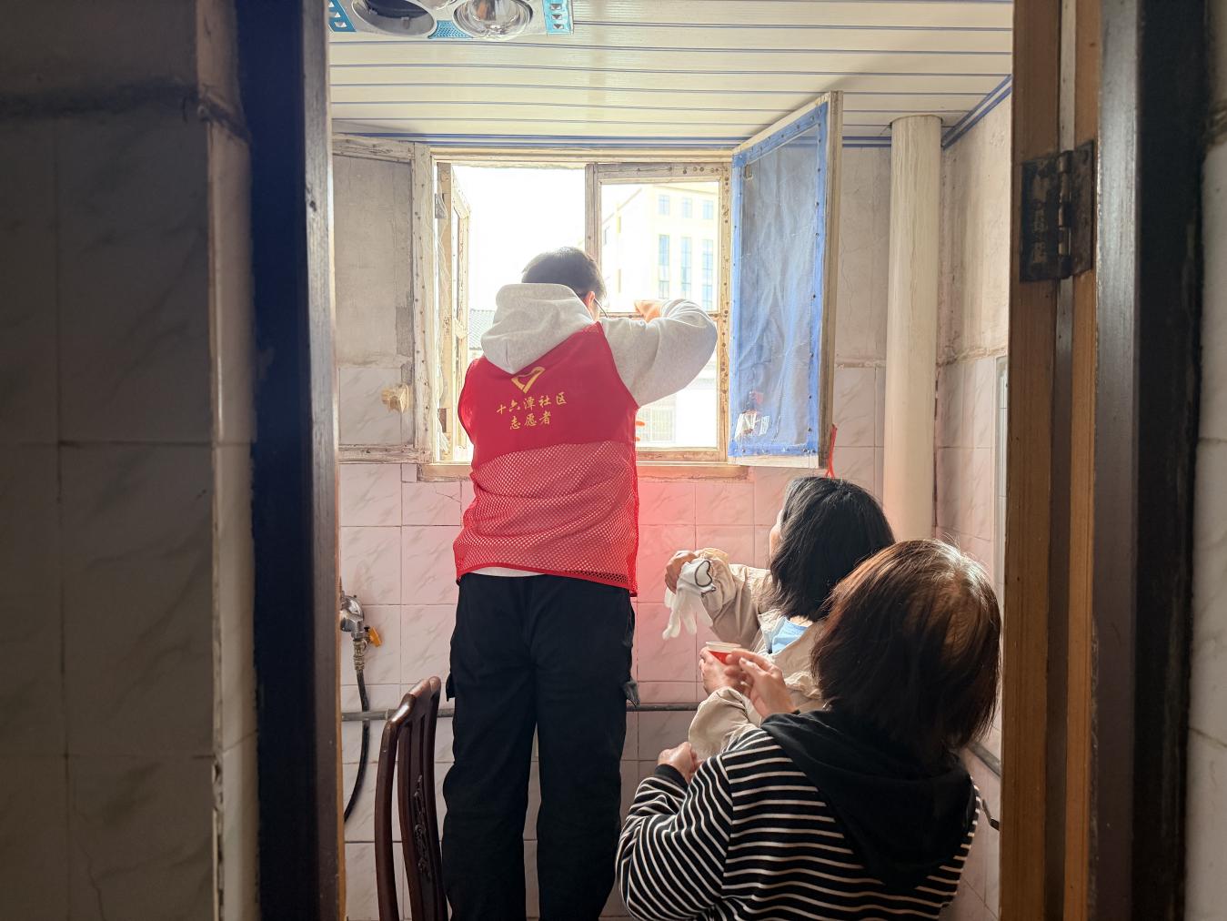 4月28日,咸安区温泉街道十六潭社区“桂乡管家”服务队在独居老人常态化安全走访中,得知居民周婆婆家卫生间窗户破损多日,当即开展上门维修,用实干为老人排忧解难。