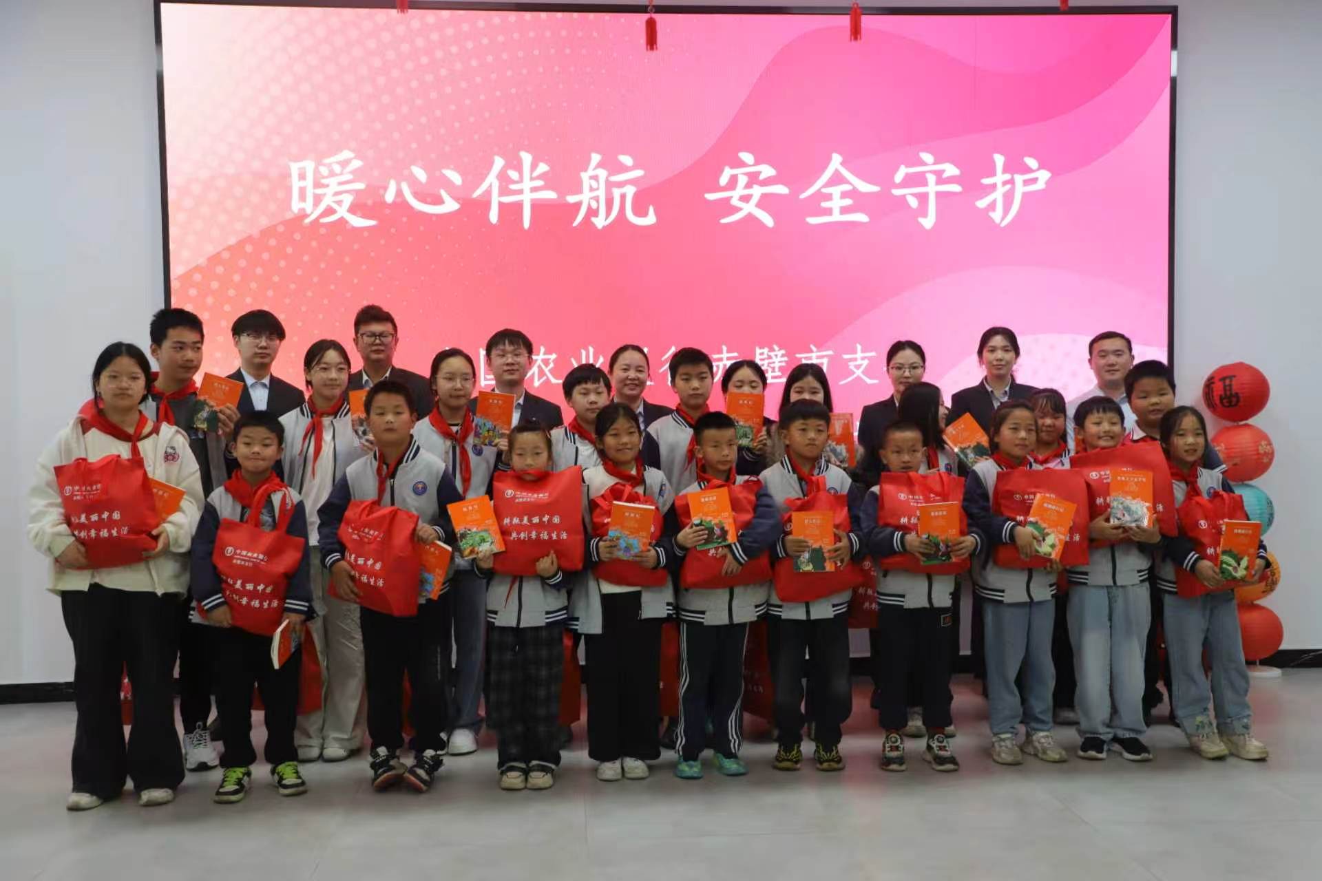 在五四青年节即将到来之际,为传承弘扬五四精神,践行新时代金融青年的社会责任与使命担当,4月30日,中国农业银行赤壁市支行团委联合赤壁市未成年人保护中心、斋公岭学校,共同举办“暖心伴航 安全守护”五四青年节困境儿童关爱服务活动,以青春之名汇聚爱心力量,为辖区困境未成年人筑牢安全防护屏障,送去暖心关怀与节日祝福。