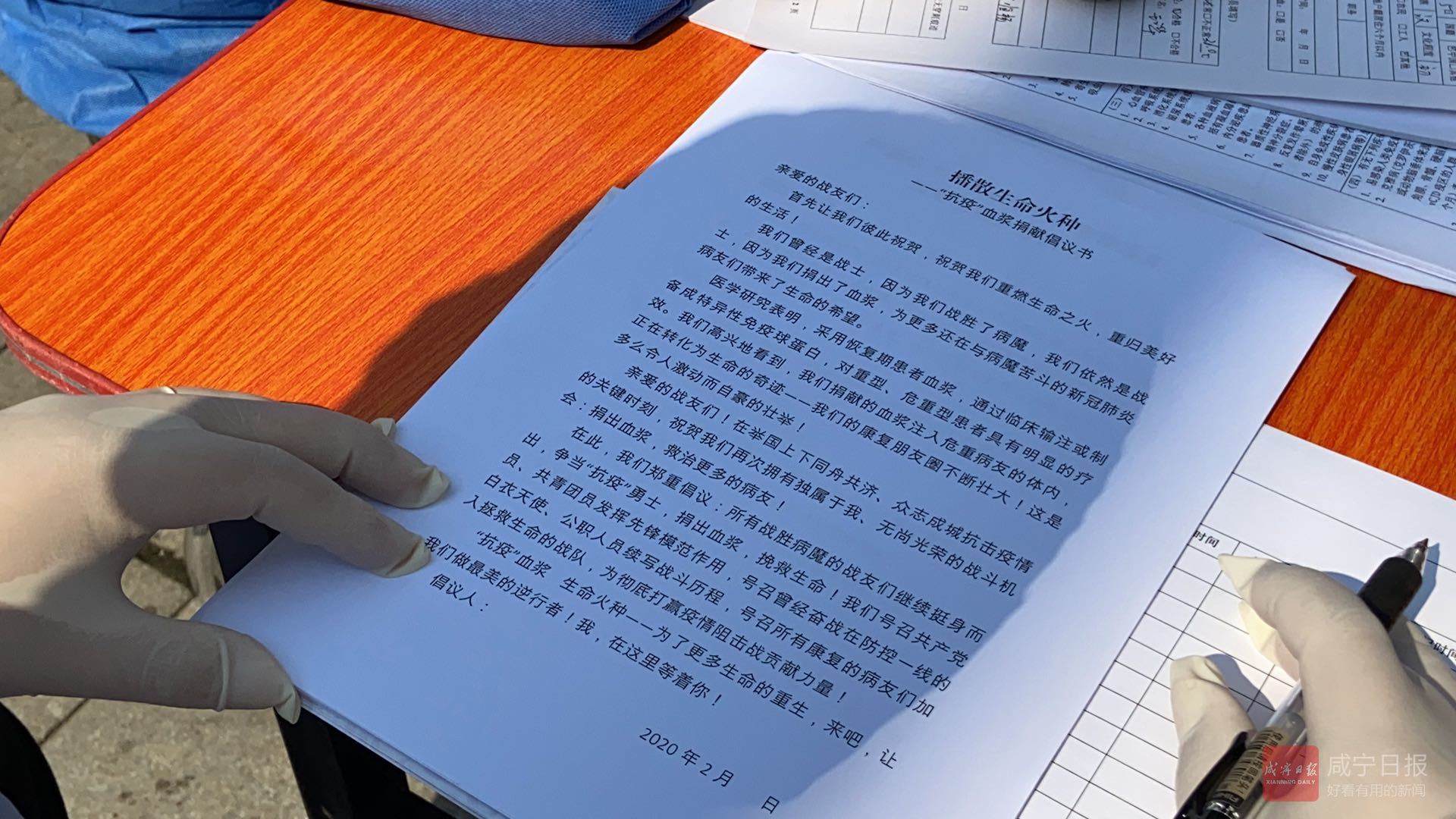 程某今年22岁,在武汉工作。1月23日,回崇阳老家过年的他出现发烧、咳嗽等症状,到该县人民医院检查后被确诊为新冠肺炎,被收治入院隔离治疗。2月9日,程某康复出院。在经过该县统一安排的为期14天的集中隔离医学留观后,他的身体状况恢复良好。在网上看到新冠肺炎康复者恢复期血浆能治疗其他患者的消息后,他立马申请报名。
