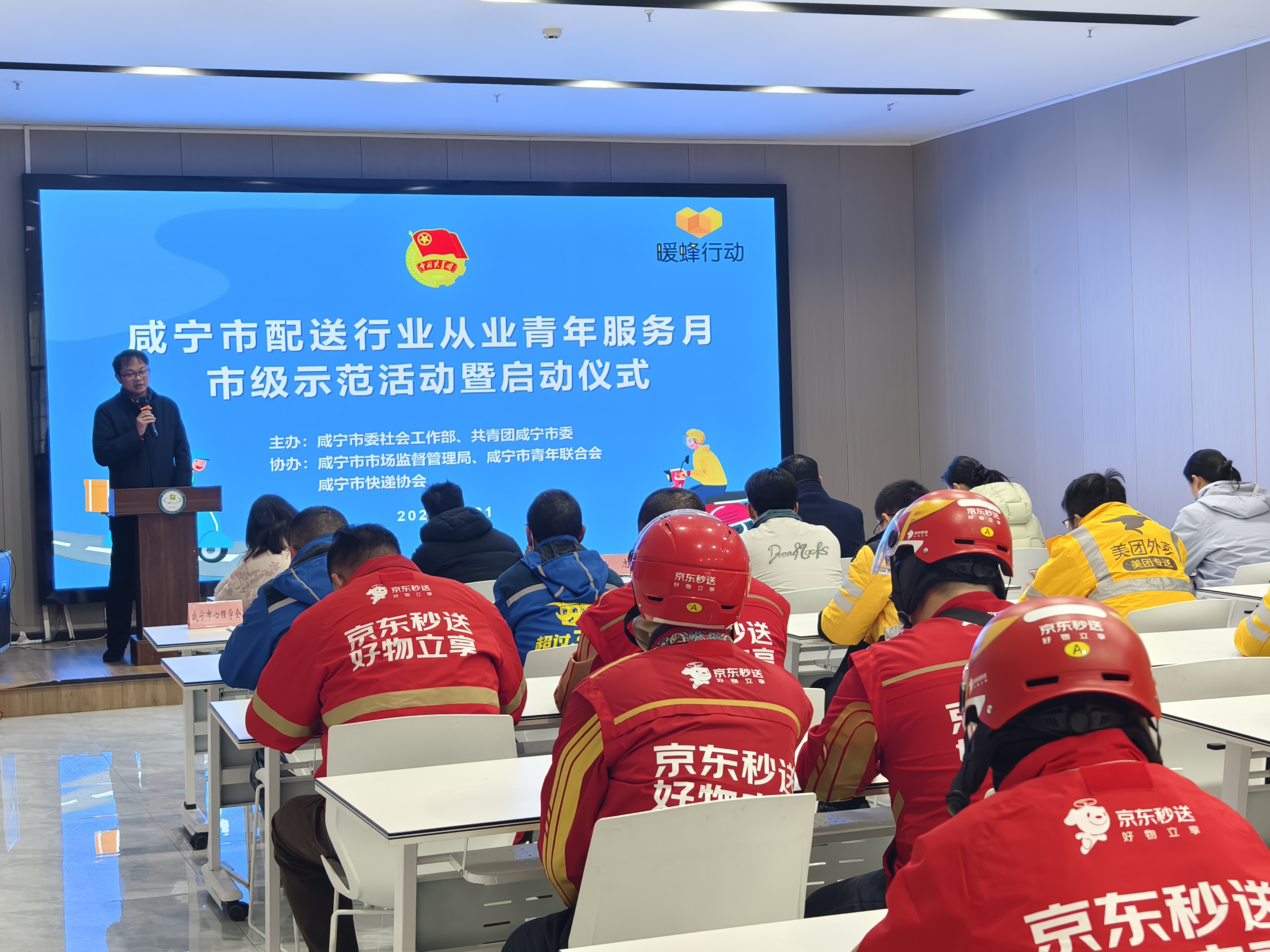 12月31日上午,咸宁市青少年宫体育馆一楼多媒体教室暖意融融。随着“暖蜂行动·配送行业从业青年服务月”正式启动,一场为期一个月的专项关爱活动全面展开。50名配送行业青年代表与相关部门负责人齐聚一堂,共同见证这一暖心时刻。
