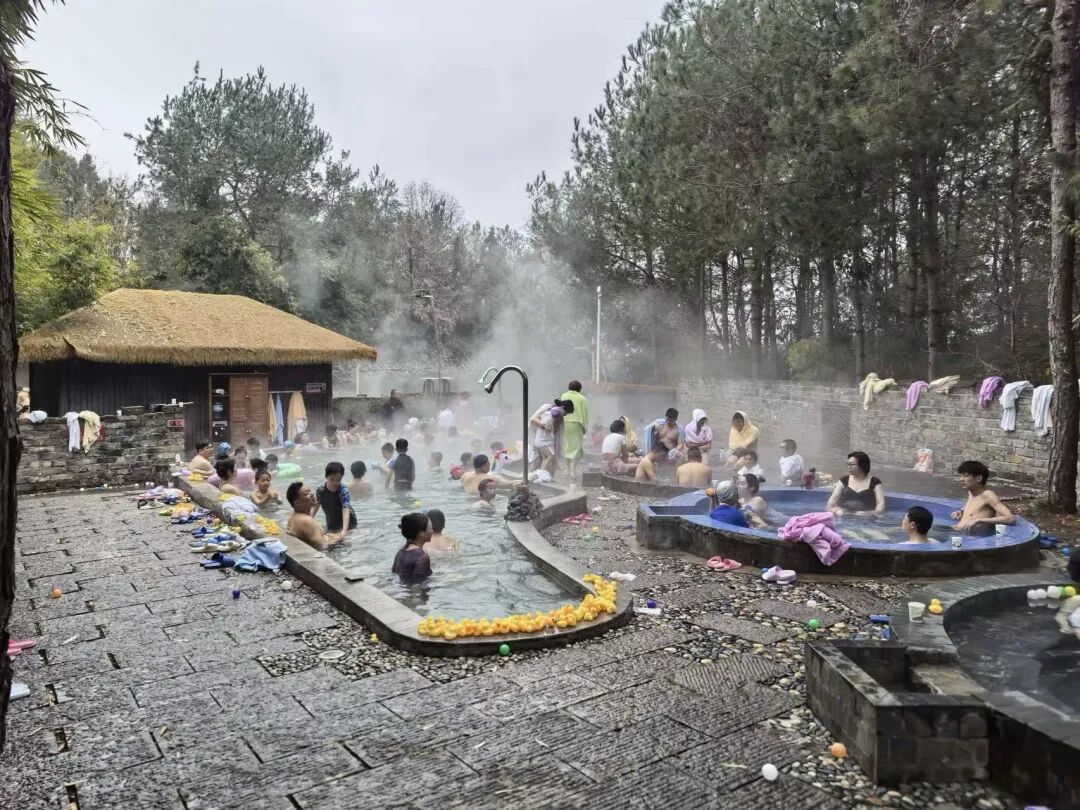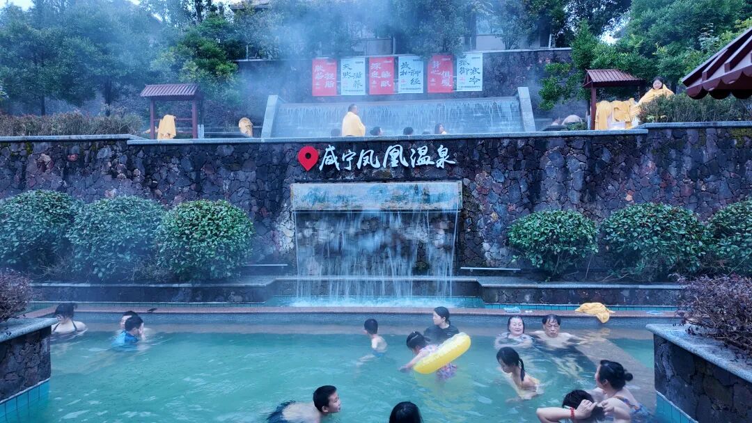 崇阳三特浪口温泉的竹林泡池全部开放。全市温泉景区首日人气爆棚,“温泉 + 亲子 + 演艺” 的组合让暖意漫溢。