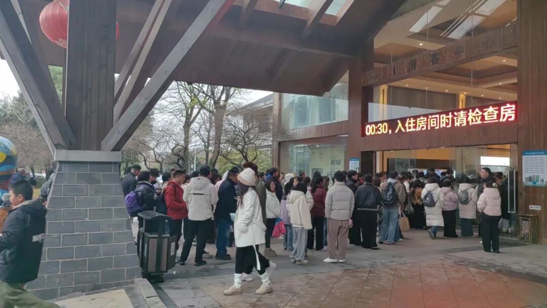 三江森林温泉全天客人不断,姜茶供应台前排起长队,暖融融的汤池里满是欢声笑语。