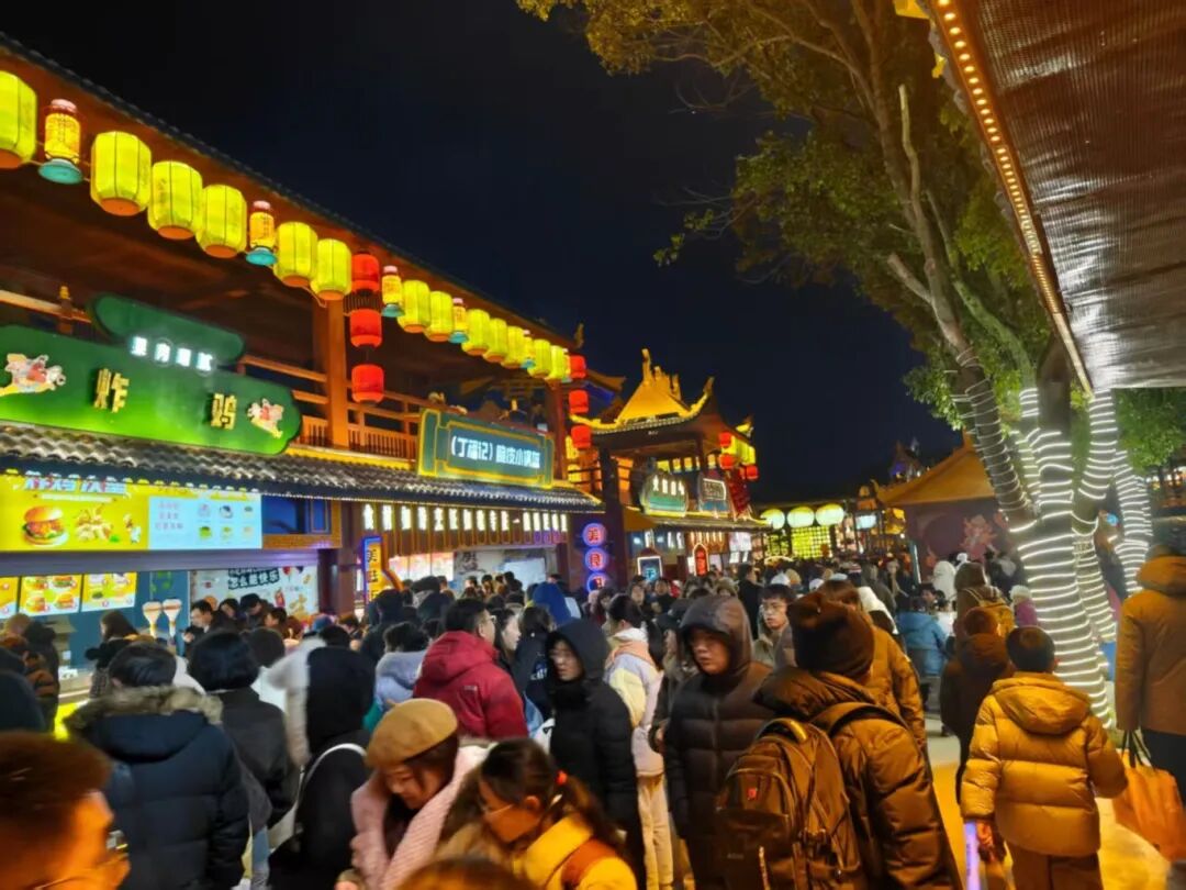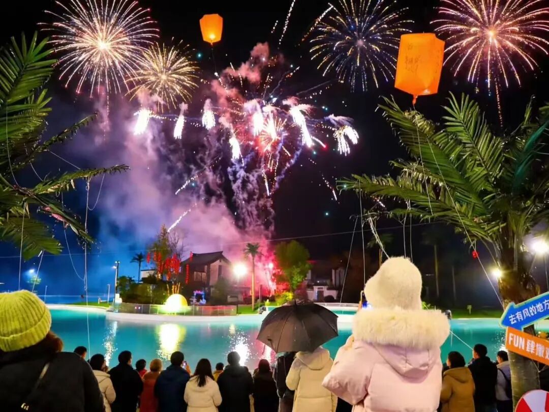 不远处的际华园景区同样热闹,夜幕降临时,璀璨烟花在水晶谷上空绽放,游客们在湖边放飞孔明灯,千盏灯火随波摇曳,“烟花配灯海,新年仪式感拉满!” 湖南游客尹方的赞叹淹没在欢呼声中。