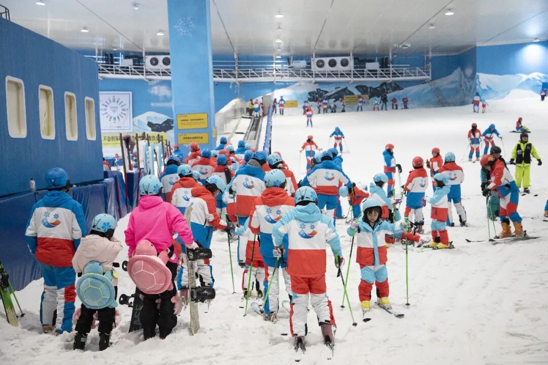 际华冰雪・香城滑雪馆更热闹,“大咖教学公开课” 刚开场,知名教练就被亲子家庭团团围住。