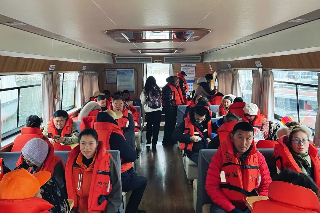 陆水湖景区同样迎来客流高峰,游船码头排起长队,游客们登船欣赏湖光山色。