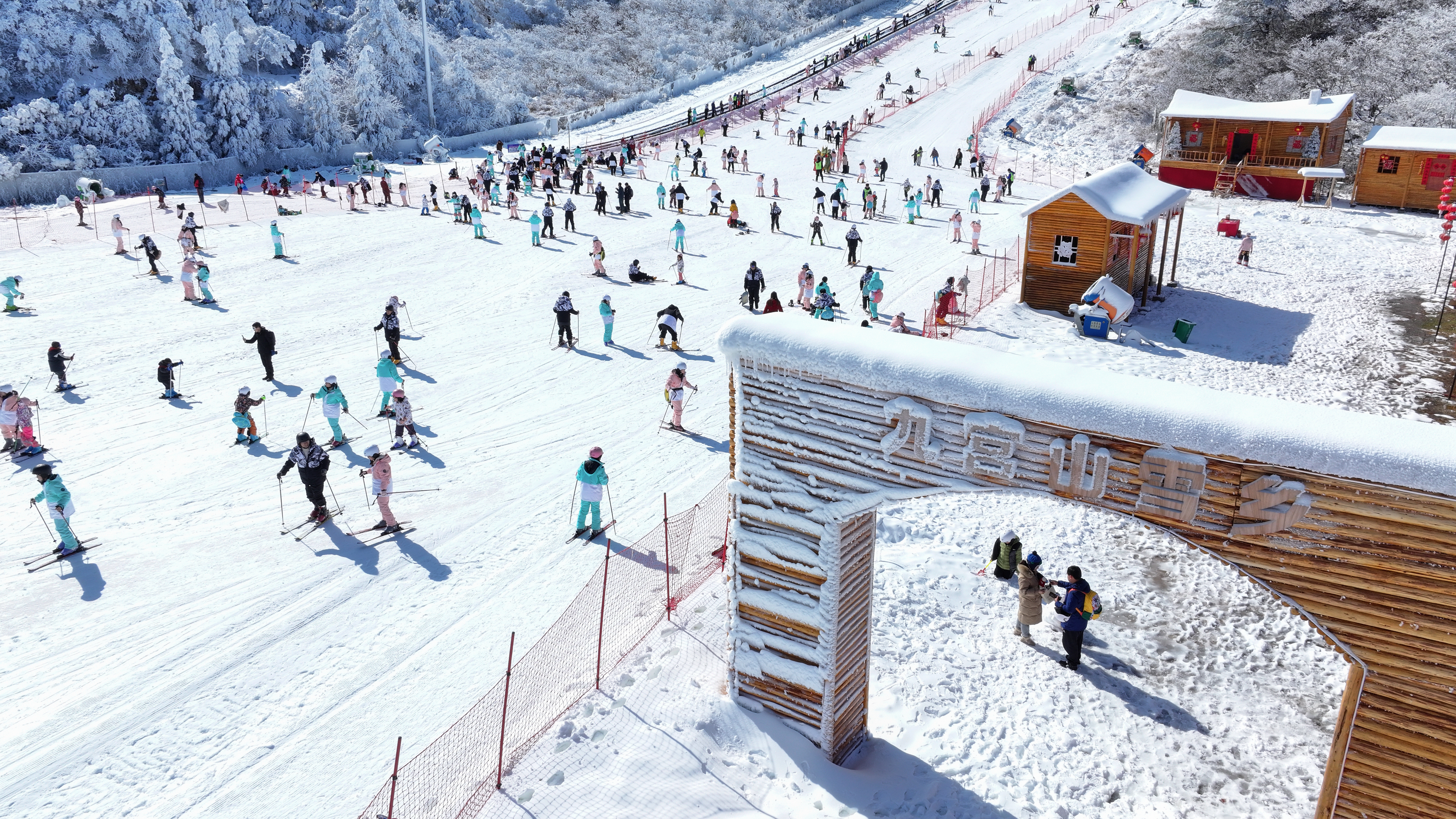 “今年对我们的整个滑雪道进行了优化升级,第二块对整个魔毯进行了翻身改造。我们今年从游客入场到游客还板然后离场,整个环节进行了优化,对员工进行了培训。目前,我们教练有60名,后期会持续地增加,最高峰达到100名。”九宫山景区事业部经理谭志龙说。