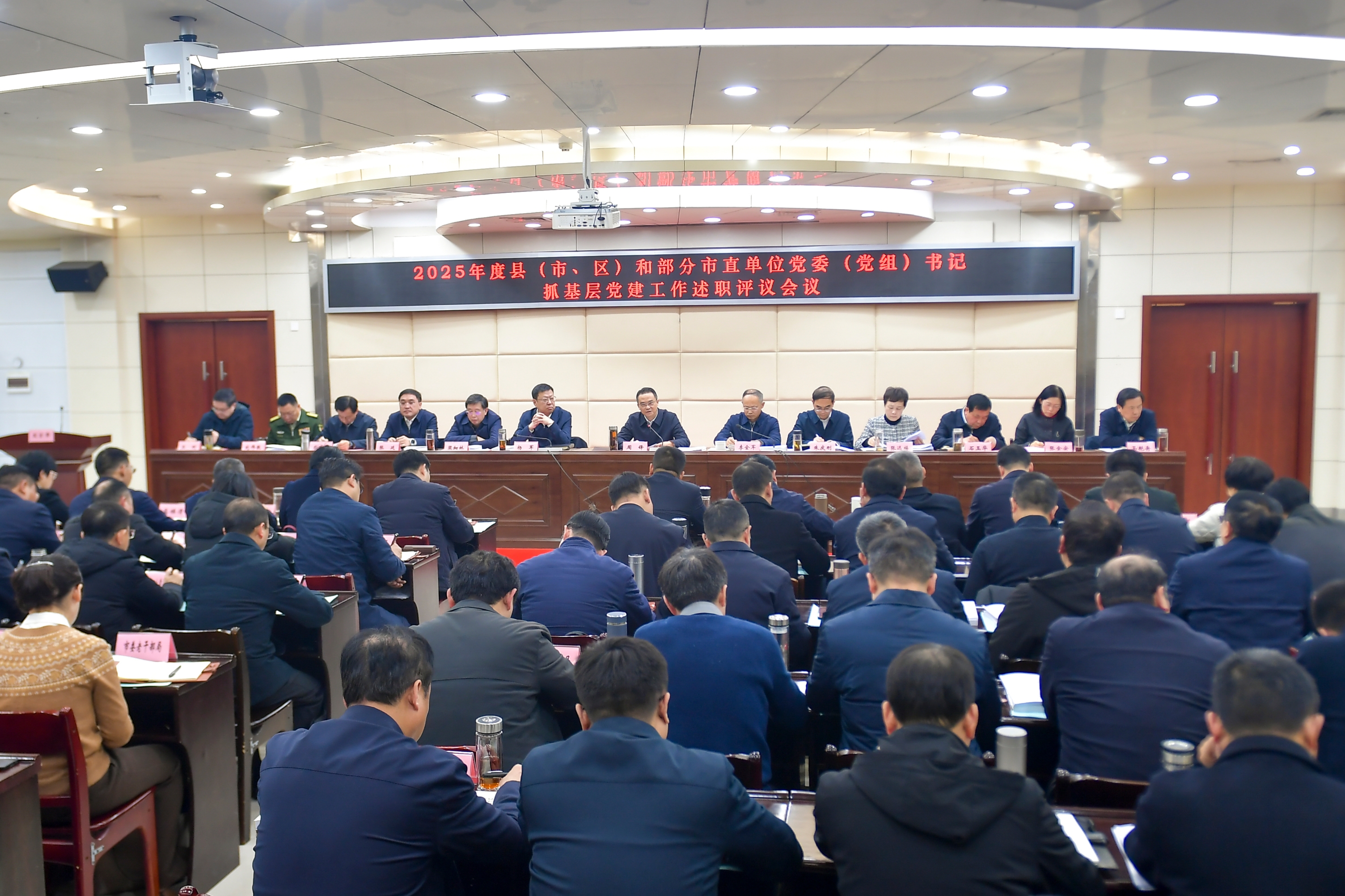 1月19日上午,2025年度县(市、区)和部分市直单位党委(党组)书记抓基层党建工作述职评议会议举行。市委书记周锋主持会议并强调,要深入学习贯彻习近平总书记关于党的建设的重要思想,切实增强抓好党建工作的政治自觉、思想自觉、行动自觉,着力固根基、强功能、提质效,推动基层党建工作全面提升,为全市经济社会高质量发展提供坚强组织保证。