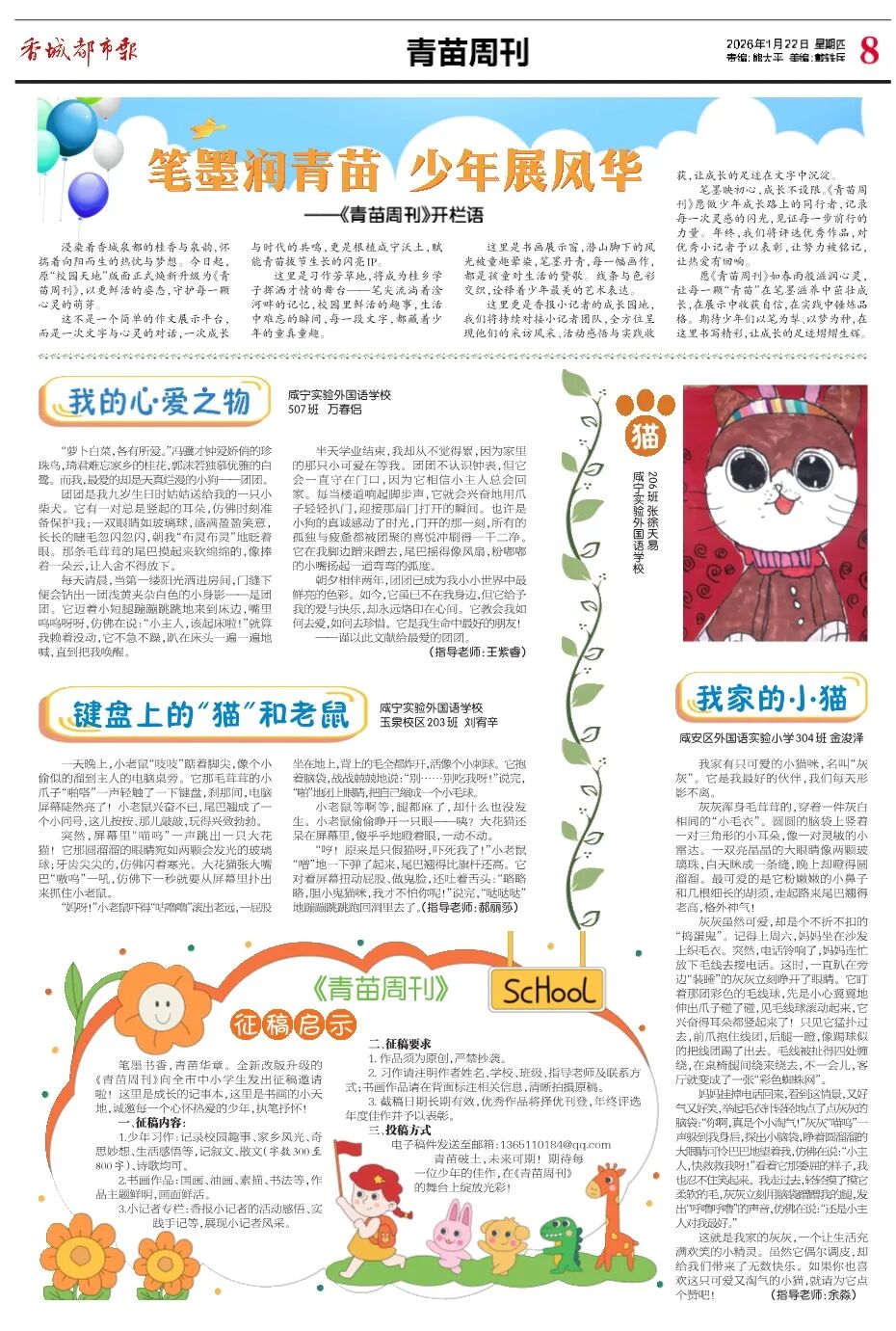 作文、书法、绘画等作品可优先刊发于香报《青苗周刊》及融媒体各平台,并标注“香报小记者”专属署名(每学期确保发布2篇以上作品)