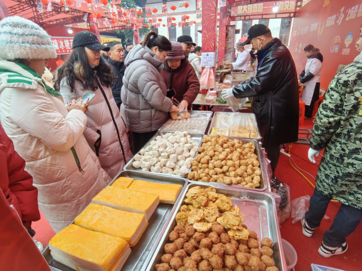 随着雪白的鱼圆滚入油锅,滋滋作响间,浓郁的香味瞬间四散开来,摊主熊开坤的摊位前很快围满了选购的顾客,“来两斤鱼圆”“称些鱼糕”……话语声此起彼伏。熊开坤手持漏勺麻利地捞起锅中鱼圆,笑着说道:“带来的两百多斤圆子,已经卖了大半了。”