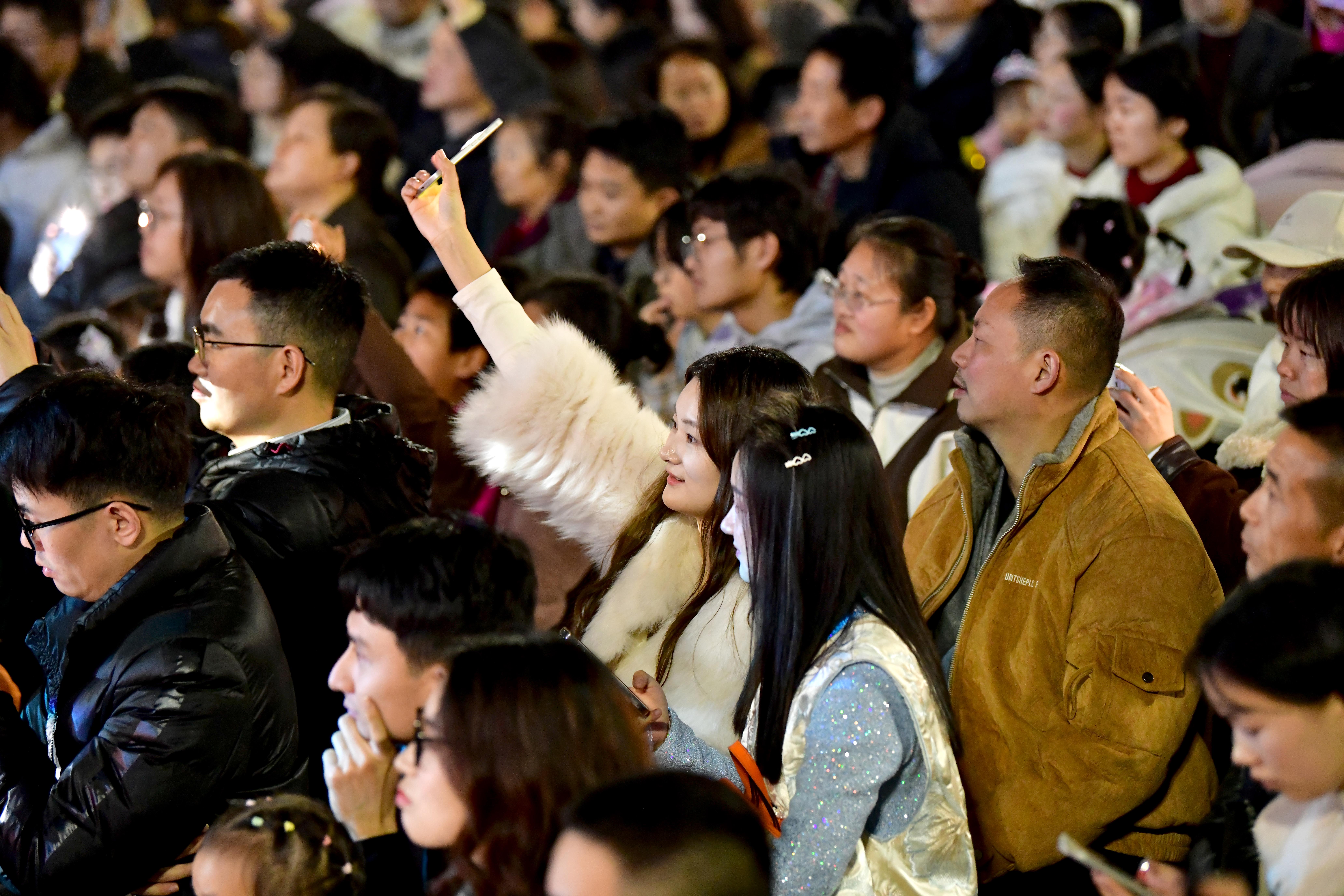 当晚七点,在观众热切期待中,胡灵、沙宝亮先后登台,用深情演唱点燃全场热情。演出现场还穿插本地民俗舞蹈,展现咸宁独特的民间艺术魅力。观众们纷纷举起手机记录下这美妙的瞬间,现场气氛热烈而温馨。