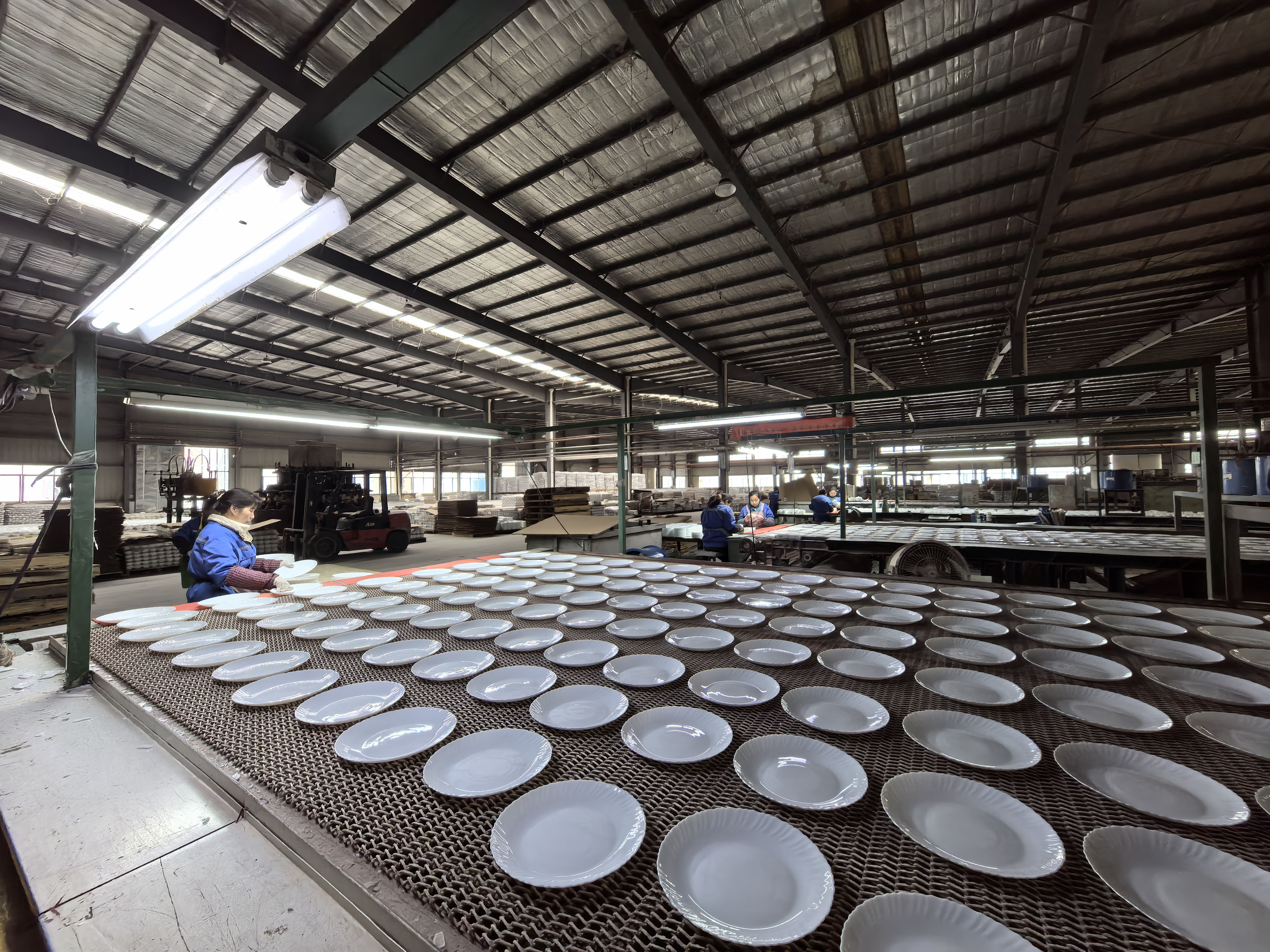 记者采访当天,工人们正加急处理春节期间积压的胚样。3个集装箱的散装碗盘订单完成装车,发往菲律宾。