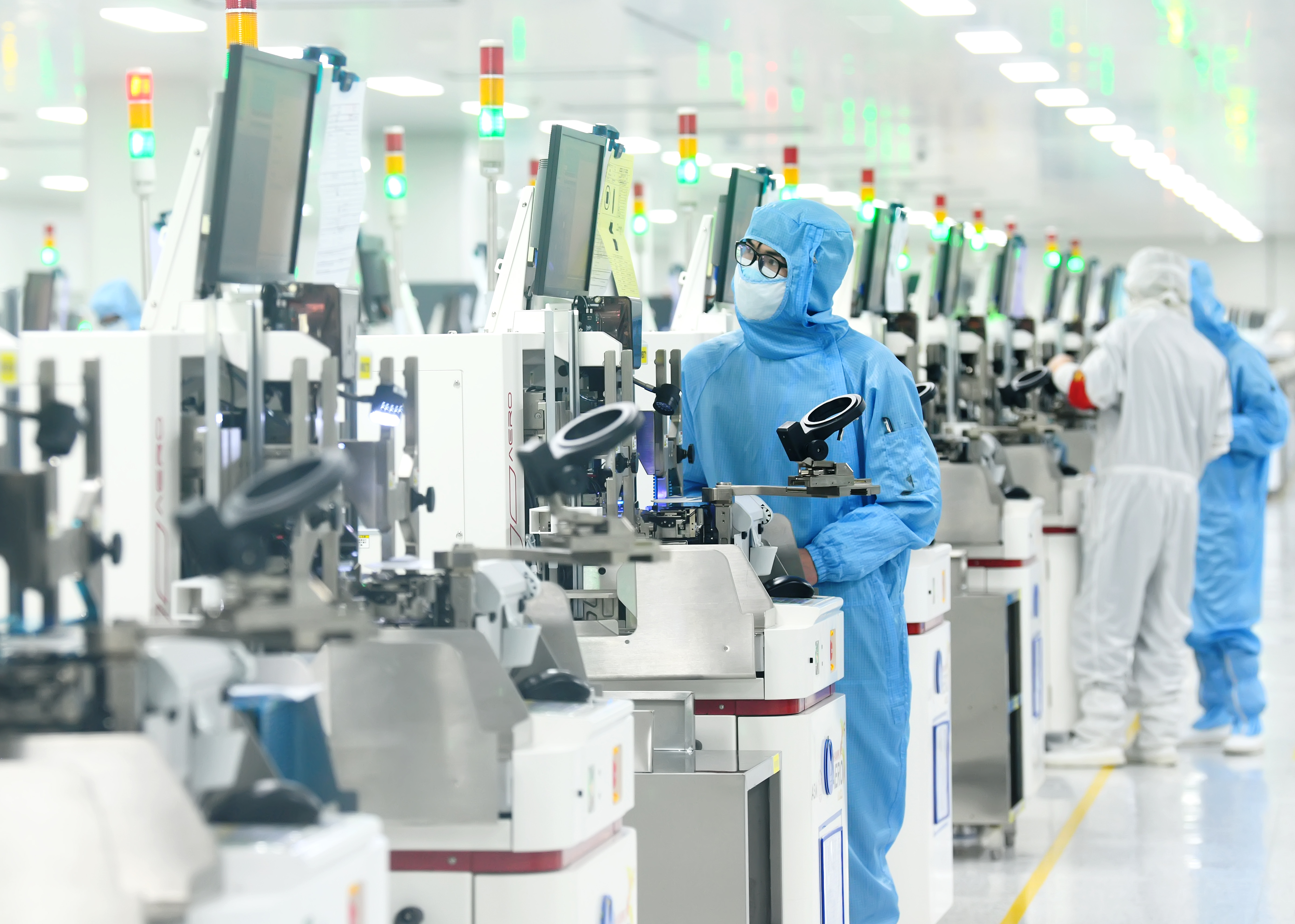 走进通城电子信息科技产业园,安芯美科技(湖北)有限公司6万平方米的净化车间灯火通明,4.0智慧封测系统全速运转,一颗颗芯片经过硅片切割、芯片贴装、切筋成型等工序,源源不断封装下线。