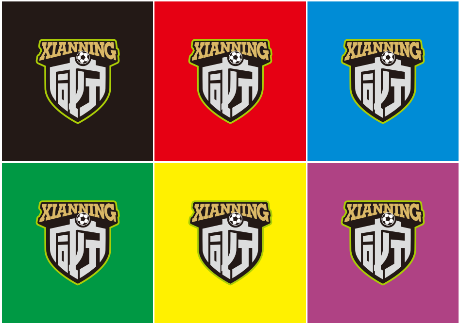 队徽主体将“咸宁”二字进行文字图案化设计,字体粗壮干练,完美嵌入盾形之中。其中“咸”字倒数第二笔与“宁”字第二笔巧妙共笔,既象征球员间精诚合作的团队精神,也暗含赛场之上敢打敢拼的进攻作风。“咸”字末笔点画被演绎为足球,精准点明运动属性。队徽上方的“XIANNING”拼音采用立体透视设计,既与盾形底部形成视觉呼应,又以刚硬造型塑造“咸宁铁军”兵强马壮、坚毅厚重的形象,暗含破门进球的凌厉态势。色彩上,采用黑白+灰+金+绿的组合,黑白奠定专业基调,金灰搭配彰显球队斩金夺银的勇气,环绕的绿色则呼应咸宁生态特色,强化地域识别度。