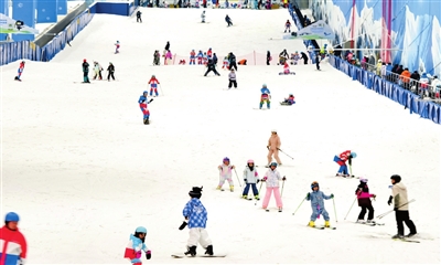 但在位于咸安区桂乡大道旁的际华冰雪·香城滑雪馆里,却有着另一番景象——零下6℃的恒温雪馆内白雪皑皑,身着各色滑雪服的游客从雪道上飞驰而下,尖叫声和欢笑声交织在一起,给这个小长假增添了一丝动感的“雪趣”。