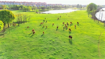 4月4日,咸安蜜月湾梓山湖湖畔,湖风拂面。青青草地上,牛群悠然吃草,孩童肆意玩耍,游客迎着湖风休憩、观景、散步……人们在此尽享春日浪漫时光。