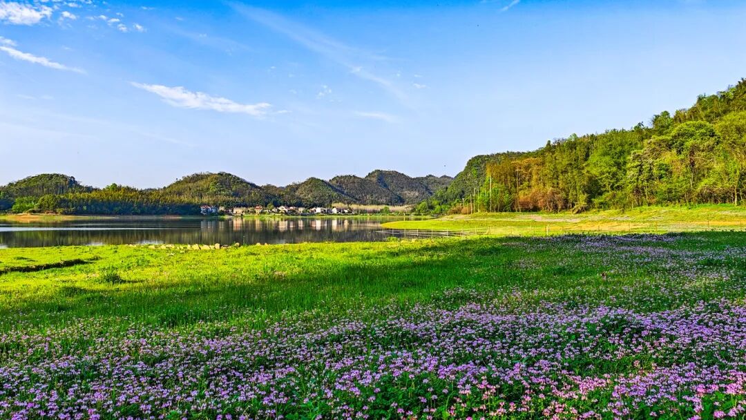 以漫山新绿为底,以遍地繁花为妆