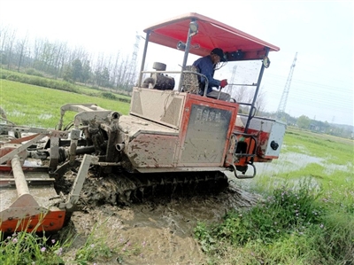 种植大户郑师傅熟练操作旋耕机穿梭田间:“今年承包了300多亩地,趁雨水正好,赶紧耕透整细,好准备下种。”