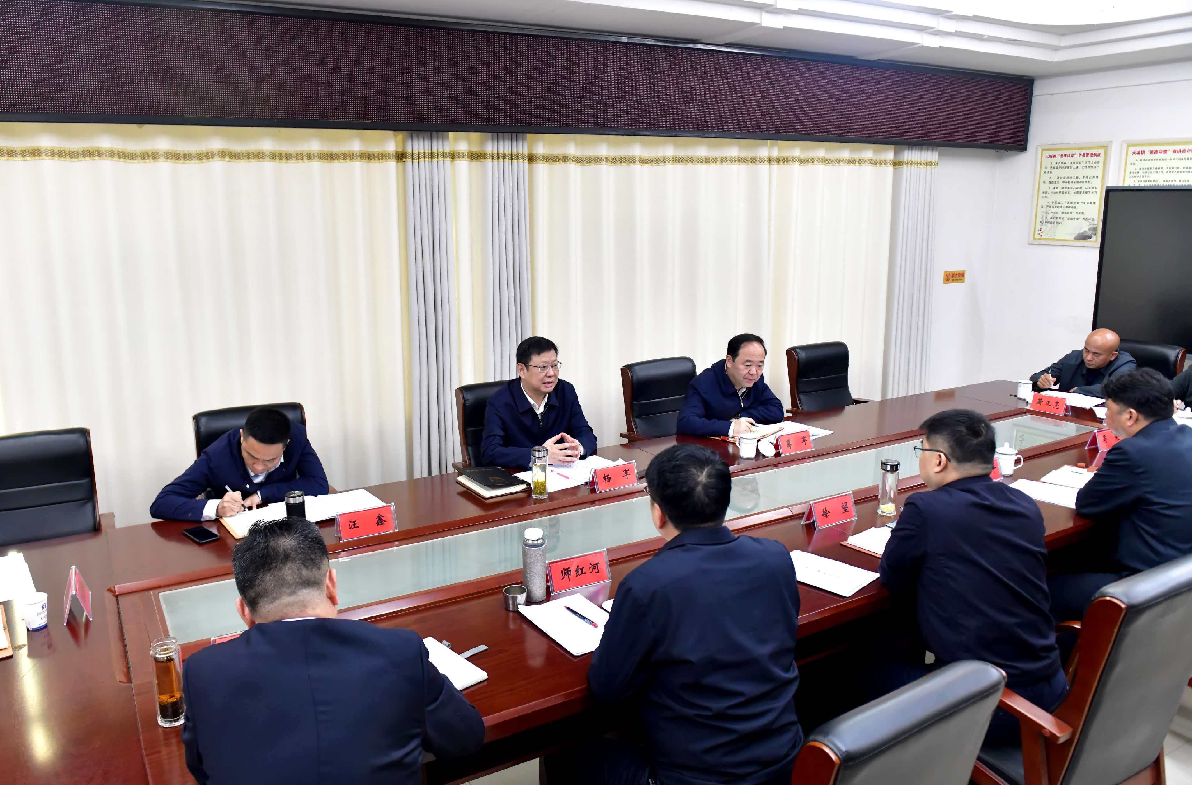 4月15日,市委副书记、市长杨军到树立和践行正确政绩观学习教育联系点崇阳县天城镇,调研学习教育开展情况并主持召开座谈会。