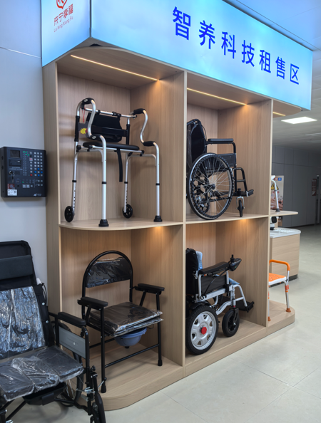 此外,中心还打造了适老化产品体验与销售专区,从赤壁定制的低糖控糖大米,到防水头皮按摩仪、智能助行设备,再到足浴机、电动轮椅等适老化器具,老人体验满意即可购买或租赁,部分电动轮椅还能使用养老消费券享受补贴,有效减轻家庭养老负担。