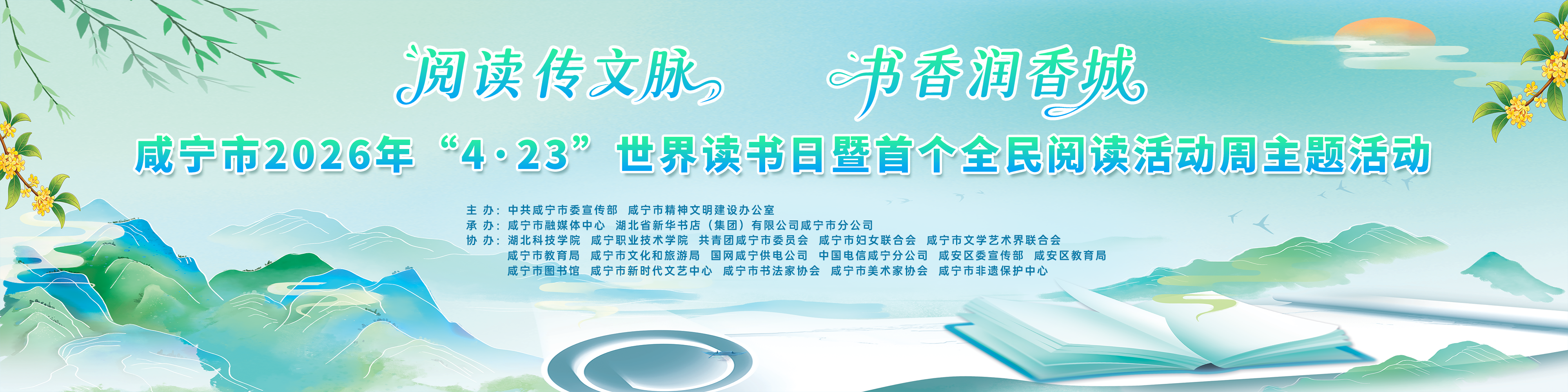 人间四月,书香致远。在第31个世界读书日和首个“全民阅读活动周”到来之际,咸宁市将于4月20日至26日举办以“阅读传文脉 书香润香城”为主题的2026年“4·23”世界读书日暨首个全民阅读活动周主题活动。