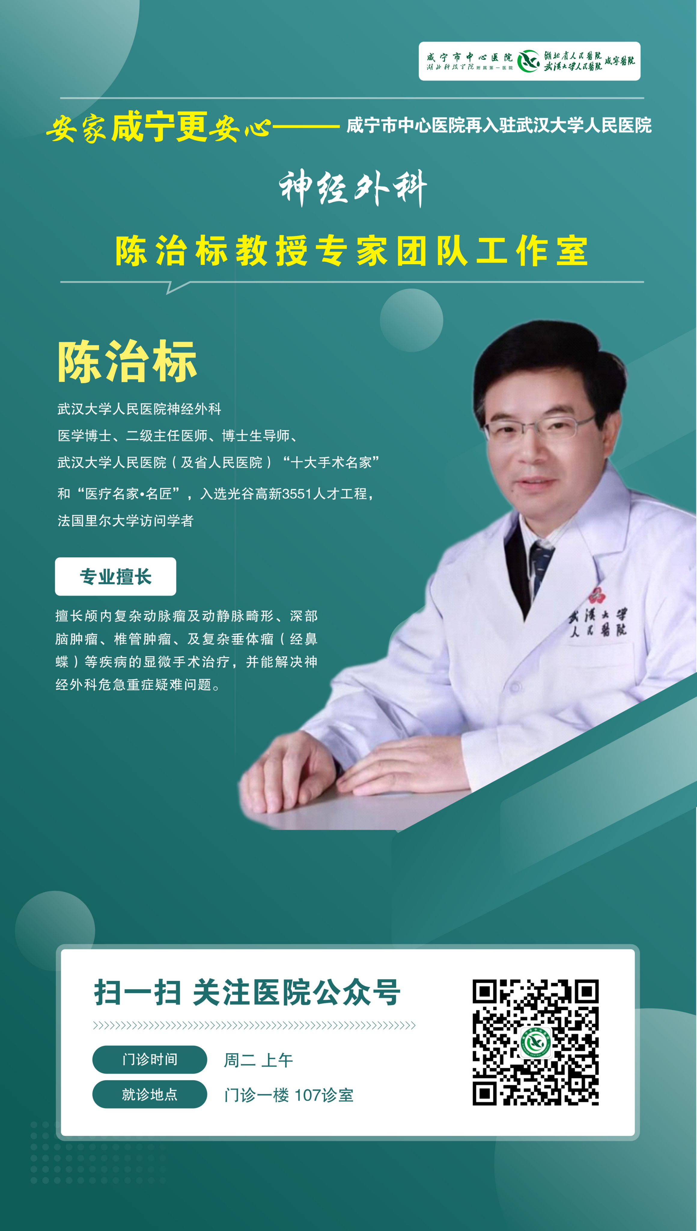 神经外科 | 周二上午 | 陈治标 二级主任医师 | 门诊一楼 107诊室 |