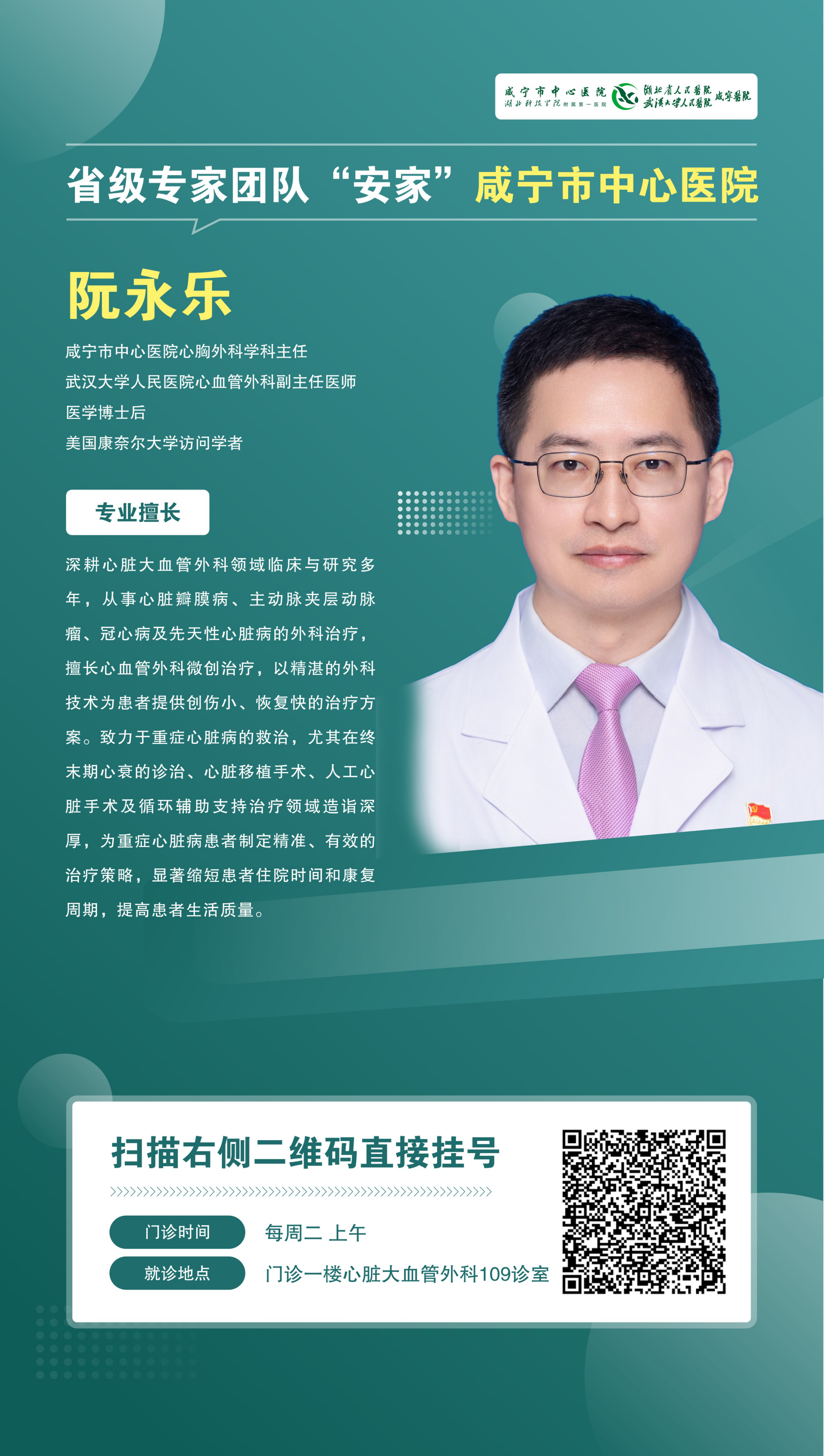 心脏大血管外科 | 周二上午 | 阮永乐 副主任医师 | 门诊一楼 109诊室 |