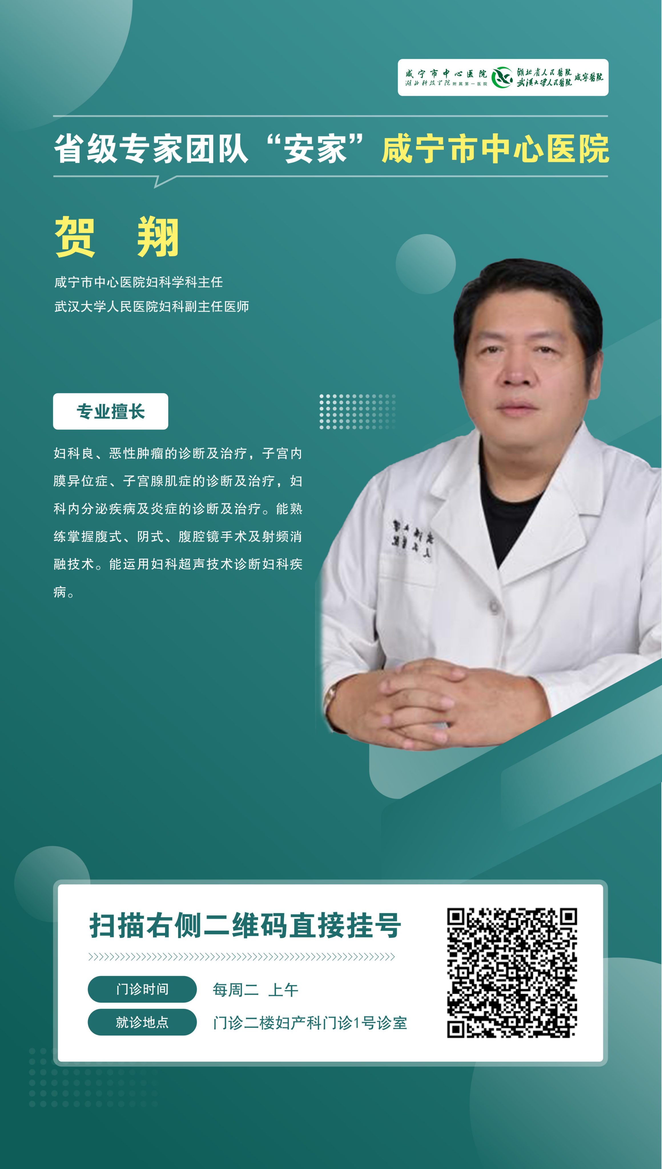 妇科 | 周二上午 | 贺翔 副主任医师 | 门诊二楼 1号诊室 |