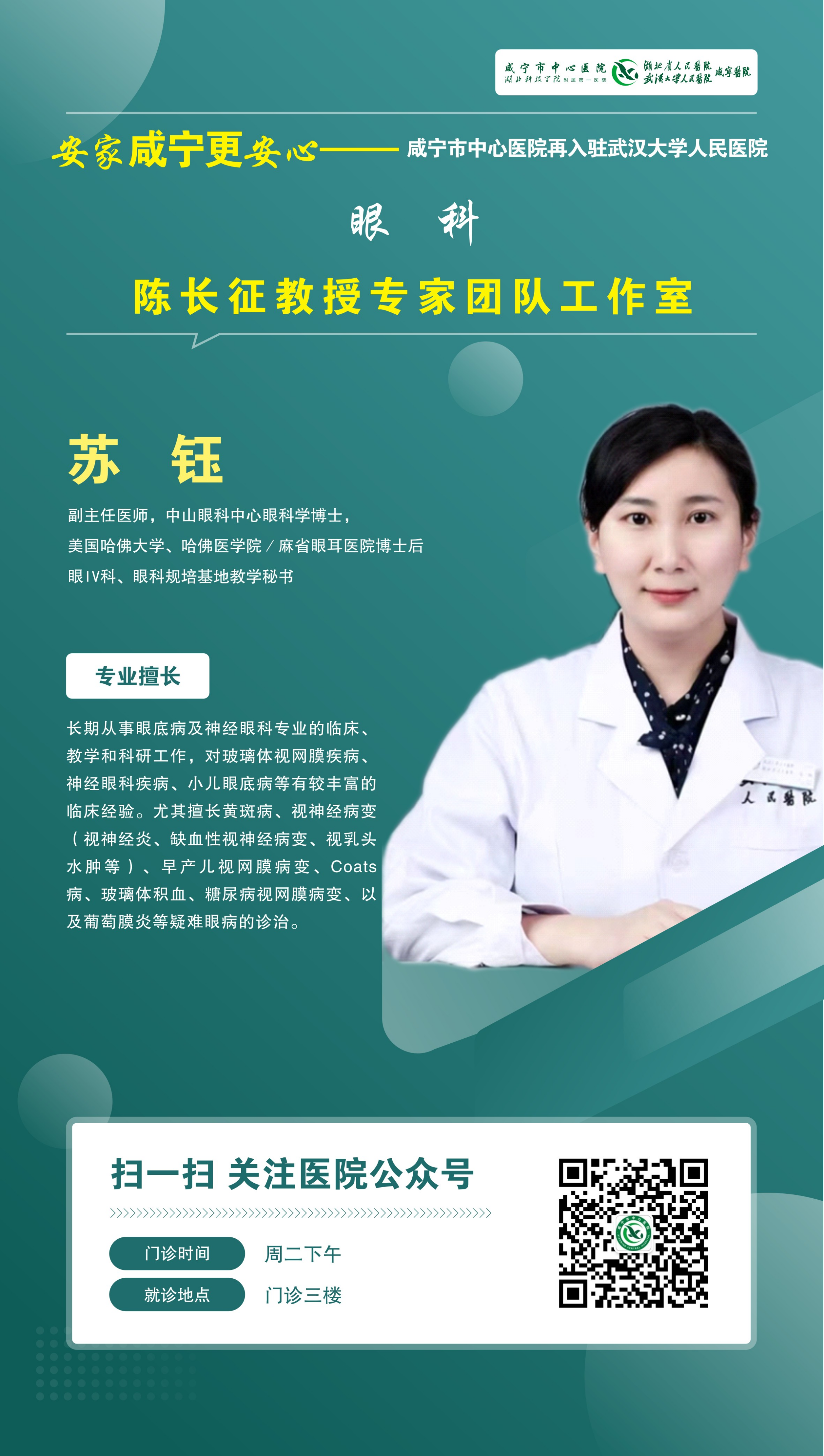 眼科 | 周二下午 | 苏钰 副主任医师 | 门诊三楼 311诊室 |
