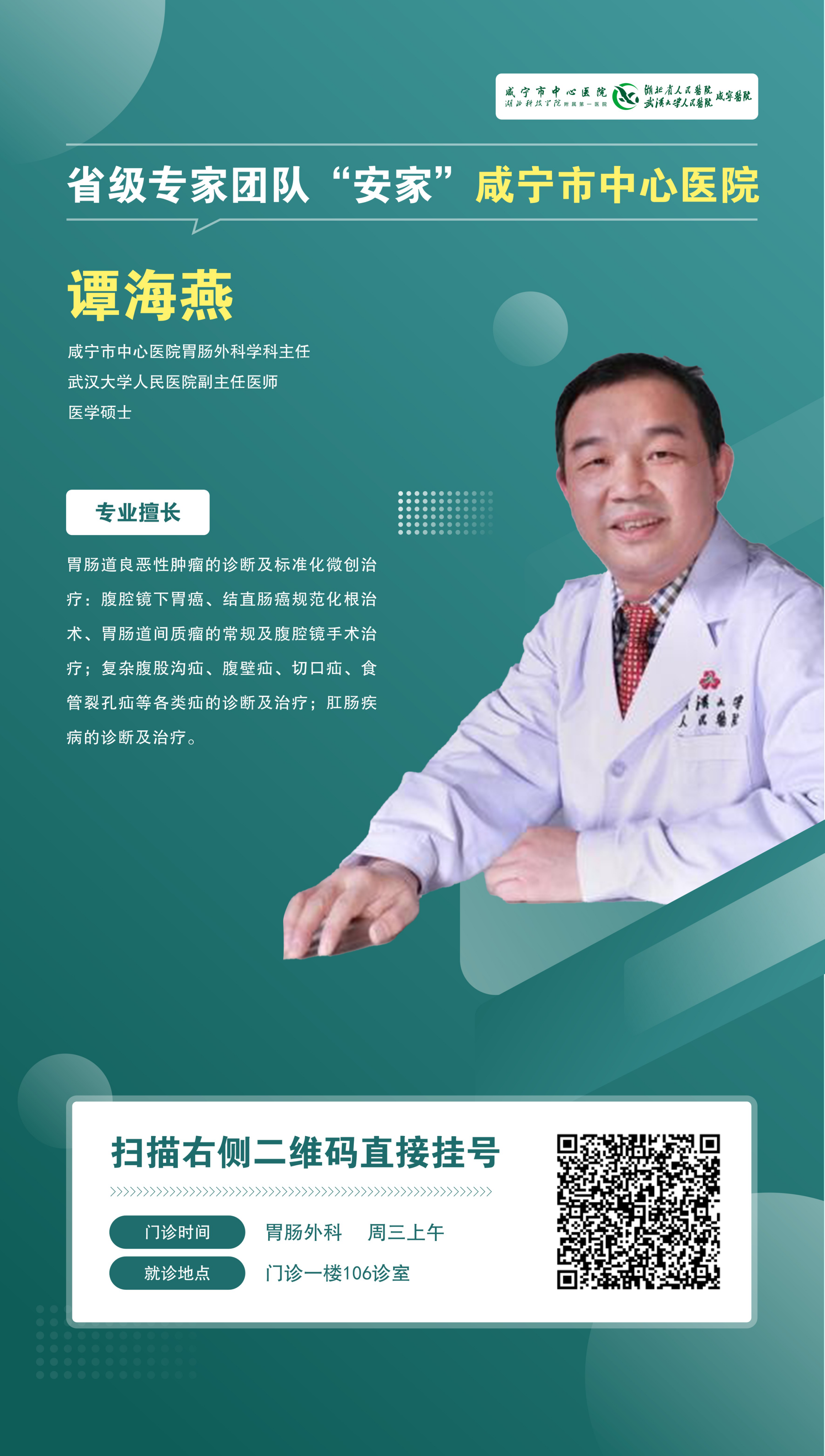 胃肠外科 | 周三上午 | 谭海燕 副主任医师 | 门诊一楼 106诊室 |